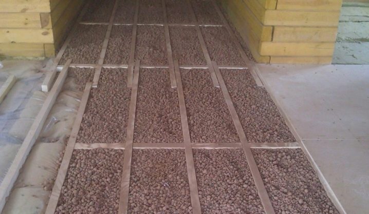For high-quality insulation today they use claydite, which is used not only in itself, but also in a mixture with foam crumbs. Expanded clay is fireproof, but it has a large mass, and this must be taken into account when it comes to the insulation of wood flooring, which creates a serious load on the beams.