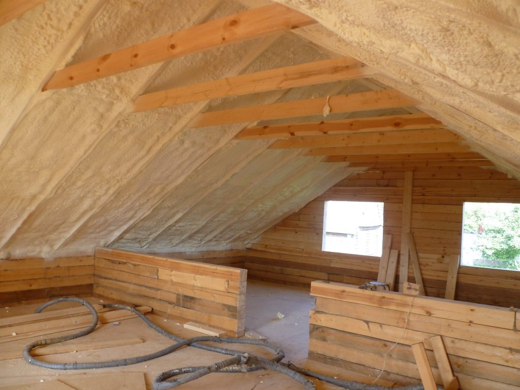 It is not recommended to warm the attic from the side of the living room with foam, as there is a risk of moisture accumulation.