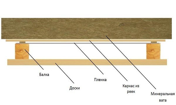 Cotton wool is laid in three ways: cells, grooves and a continuous layer.The choice depends on the degree of load. The best design is obtained from a continuous layer. First you need to lay a vapor barrier film. She removes water vapor, which is sent from the room to the attic. The film is laid strictly in accordance with the marking, lap. Wooden structures must be tightly covered with foil, otherwise they will rot.