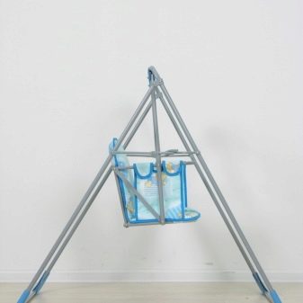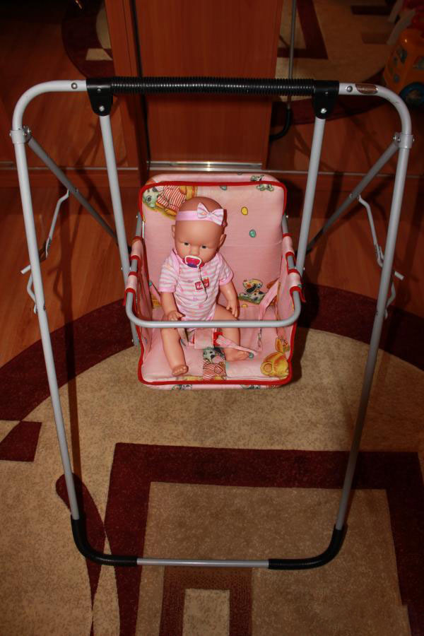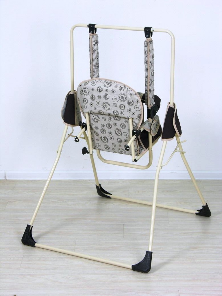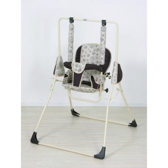 For the convenience of the baby has a soft seat, and for his safety - fixing belts. Swings have a removable table, thanks to which they can be used as a chair for feeding. They are easy to fold and have a small weight, so that they are conveniently stored in a small apartment. They also easily fit in the trunk of the car, so you can freely take them with you to the cottage or to a picnic.