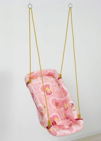 - For children up to 3-5 years old, the model “Fairy Hammock Comfort” is recommended. This is a cradle, and a hammock and a swing at the same time. You can use such swings for children from the age of six months. This is a more comfortable version of the swing, as there is not only a soft and comfortable seat, but also bumpers so that the baby does not knock while sleeping or playing. Also, the model has seat belts and secure fasteners. If the baby fell asleep while riding, the seat can easily be removed and moved with the baby to a more secluded place. By the way, the seat itself can be adjusted and take several positions.