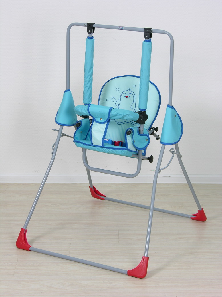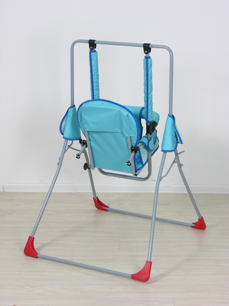 - Model with double seat. These swings also have non-skid support stands and a standard folding “book”. If you have twins, or children - after the age, you can choose this model for two.