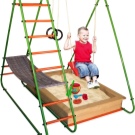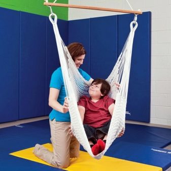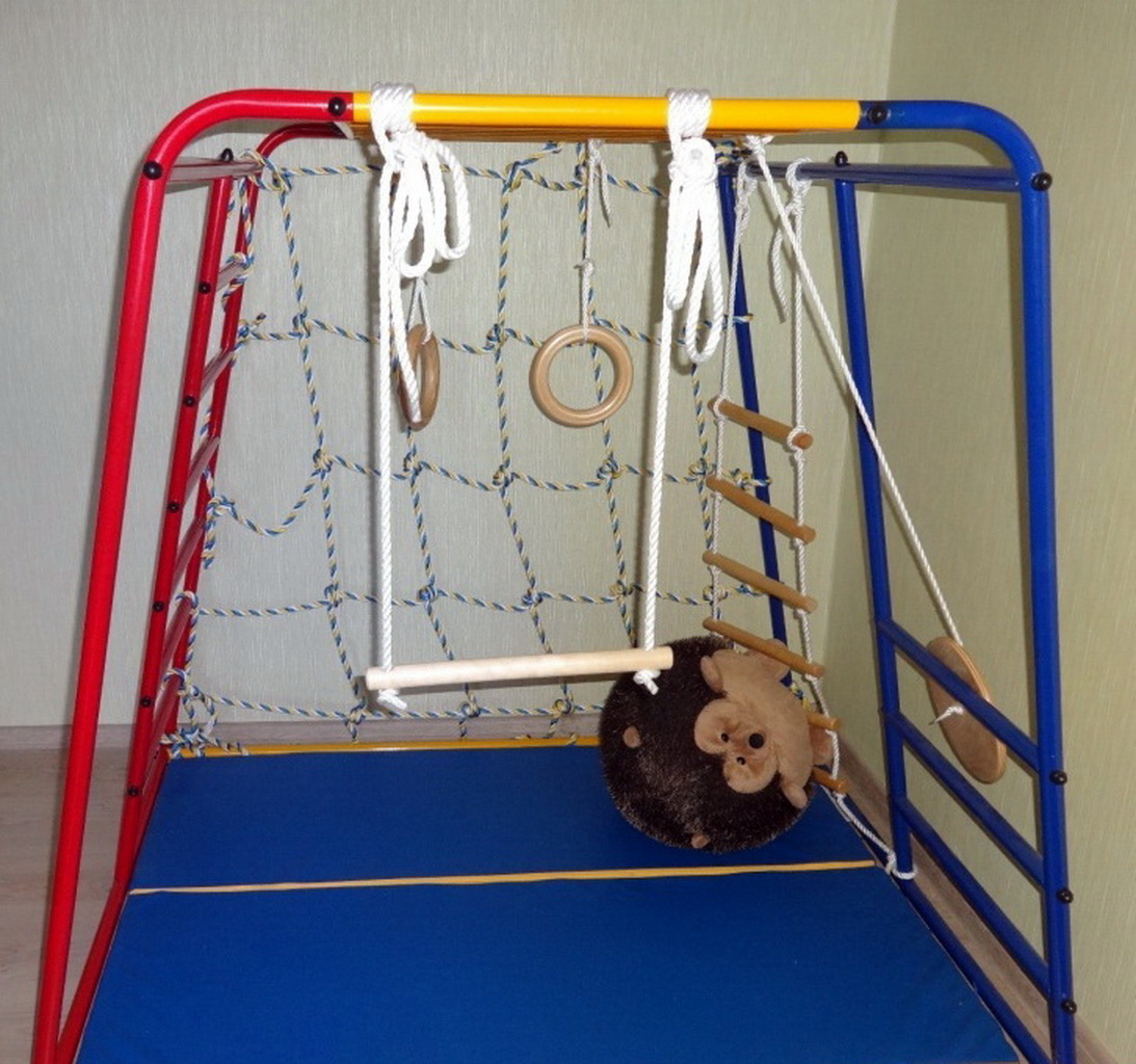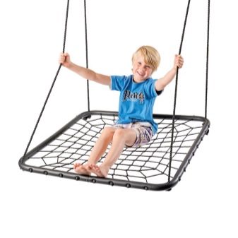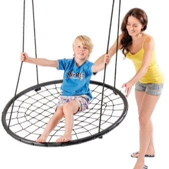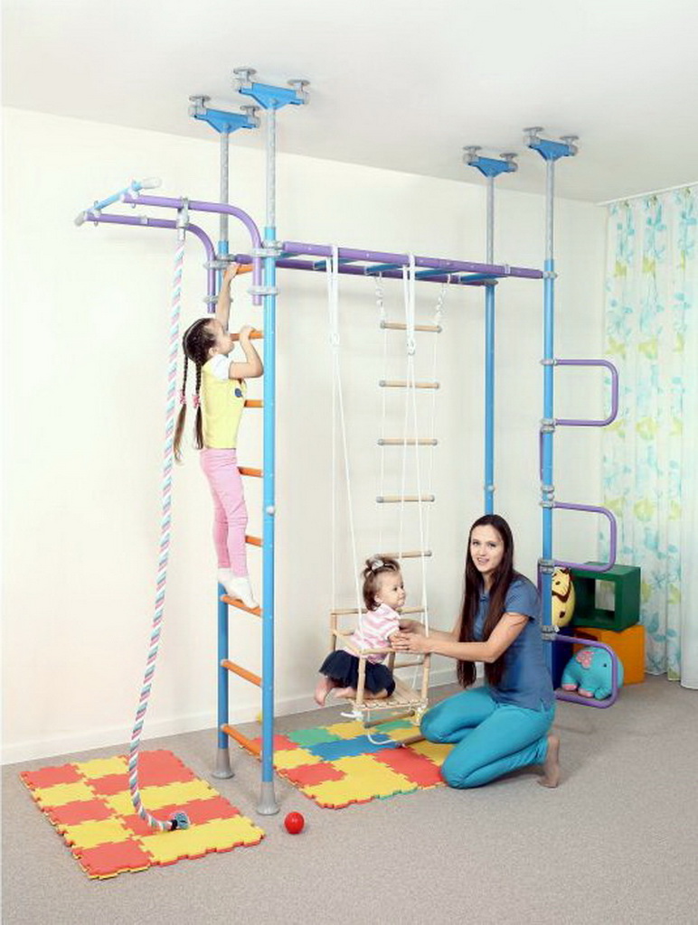 A great option for a swing room - hanging structures that are installed in the area for practicing outdoor activities and climbing the crossbeams.Swing is a simple installation on multi-colored ropes. Hang up the swing is not difficult, all fasteners are thought out to the smallest detail. Swings of this type are designed for children from 3 years and older, so they usually come bundled with other types of sports facilities.