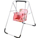 A small installation of a swing for a room, designed for children up to 1 year old, does not require a lot of space or special hanging mounts. The design is made of metal and is a tubular frame with a comfortable cloth seat and back. The product is made in pink colors and is suitable for installation in the room for the girl. A similar design can be installed in the nursery for a boy, preferring multi-colored prints or products with thematic design in blue tones, for example, with fish, anchors.