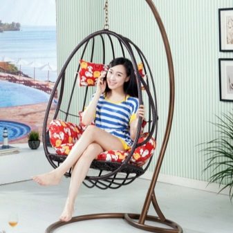 A simple floor construction in the form of a swing-cradle is suitable for the smallest. Funny prints and memorizing pictures will give the kid a lot of joy and delight. Such swings can be estimated for ease and mobility. Swing can take with them to the country, they easily fit in the trunk of a car. The top design is complemented by a strap for hanging toys.