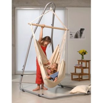 - Children's swing for children from 3 years can be installed in a house with high ceilings.This group of swings includes structures of the following type: