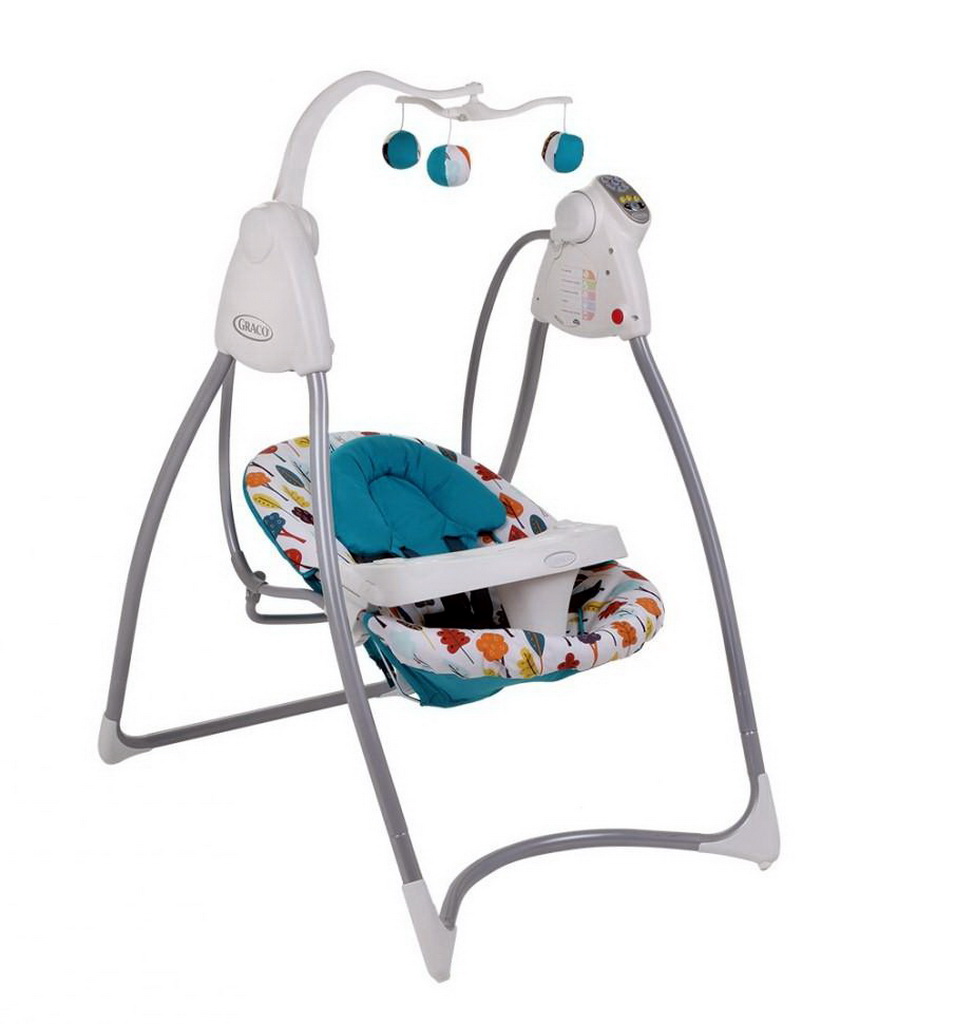 - Hinged swing-transformers - another version of a convenient design, but already intended for children from 6 months. The equipment is focused on active kids, so the designs are equipped with comfortable soft seats with the ability to change the position of the backrest.Swinging movements with a selected swinging amplitude can be set using the control panel. Swing-transformers have their own technical features. If necessary, such a swing is easy to turn into a highchair and even into a chaise longue or portable cradle.