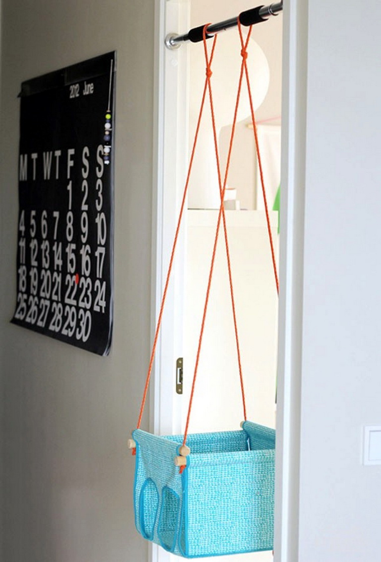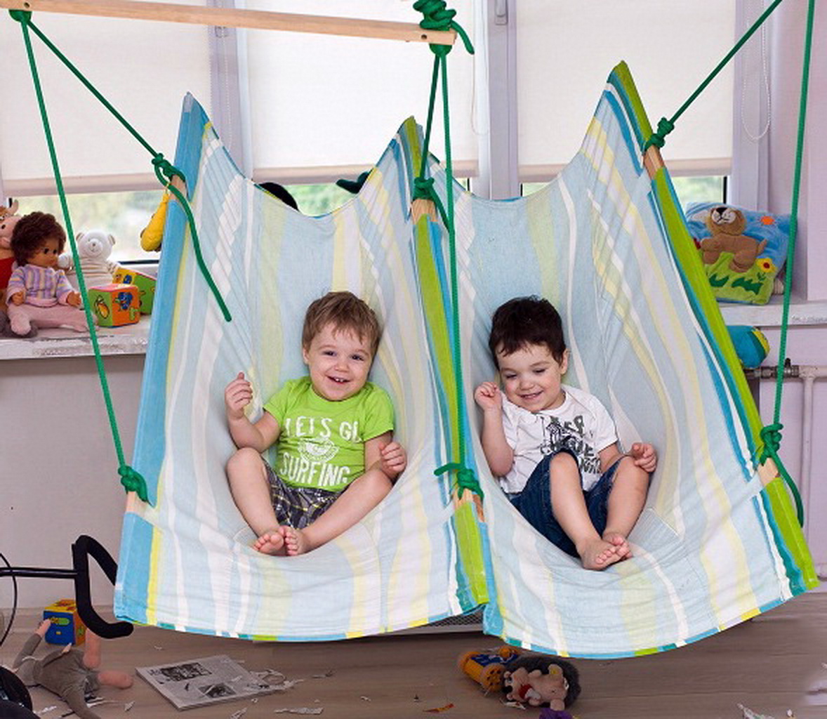 Home swings for a child are the same necessary attribute of a child’s room as a changing table or cot. It is not necessary for the child to go outside for active games. Convenient design can be installed directly in the room. The main thing that the swing was safe for the baby and not interfere in the aisle. Such designs for children can be seen both in the apartment and in a country house or in the country.