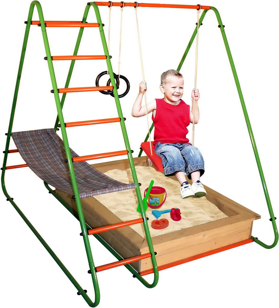 3. traditional-style swing for swinging with different amplitudes of movement and with different configurations (children like the design with bright design).
