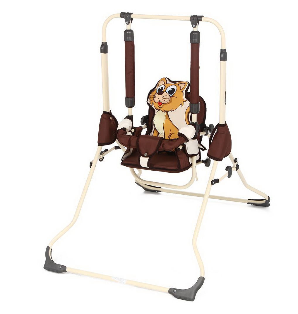 - Reliable and comfortable swing seat. Small children are too restless, and to avoid falls or misalignments, the modern swings are equipped with a comfortable seating position with side bumpers. In addition, the landing is fixed with the help of three or five-point seat belts. Soft seats are equipped with removable covers. An adjustable backrest allows you to find the optimum tilt for the comfort of the child.The latter is especially important if the child often falls asleep during the swing. Special restraints in places of fasteners of the seat prevent the child from accidentally slipping out when rocking.