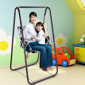 Next, consider the swing swing. In some ways, they are not very reliable, but they have a number of undeniable advantages. They are universal in use: suitable for home and street. They do not take up much space, they are very mobile and light in weight, which is a big plus in the conditions of modern apartments.