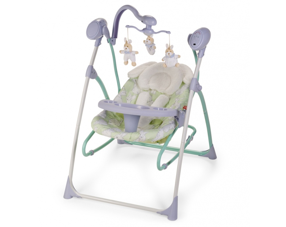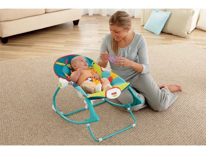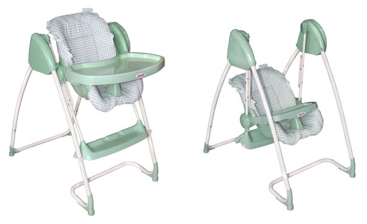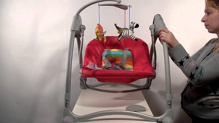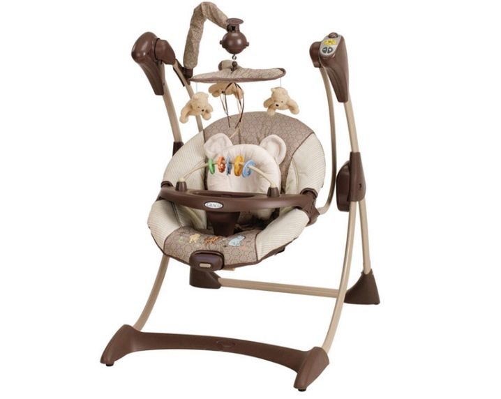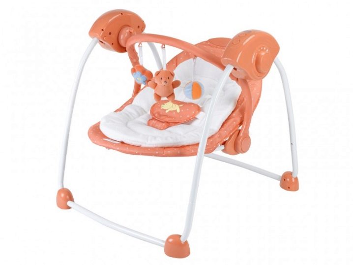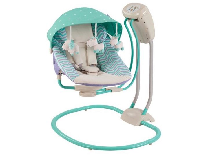 Such swings are often referred to as swinging centers. They have the function of vibration, as well as various melodies that will calm even the most restless baby. The function of the backrest adjustment allows you to use the swing for children of different ages. The chair can help in carrying the baby.
