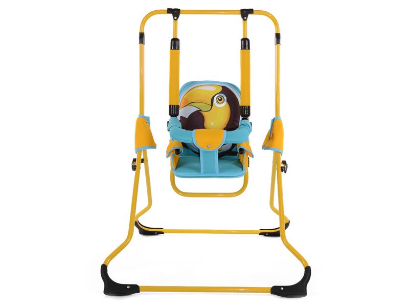 The swing has a noticeable weight, and if the design does not provide an inguinal strap,then we advise you to try to be nearby and make sure that the baby does not slip out from under the bumper swing and does not fall.