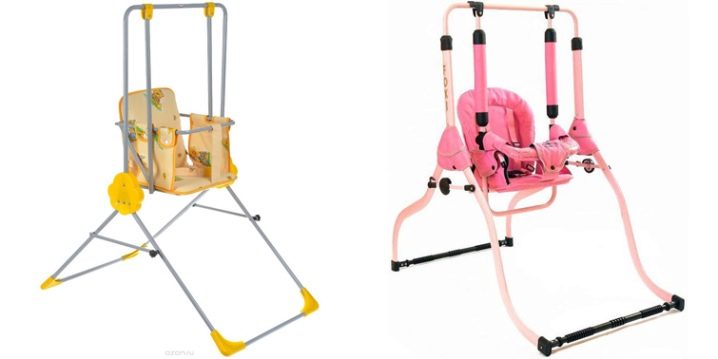 Floor swing brand "Fairy" are placed on the floor and can be easily assembled. The seat in them is soft and there are seat belts. Such a folded swing can easily fit into a car, they can be taken out of town for a weekend or used within an apartment.