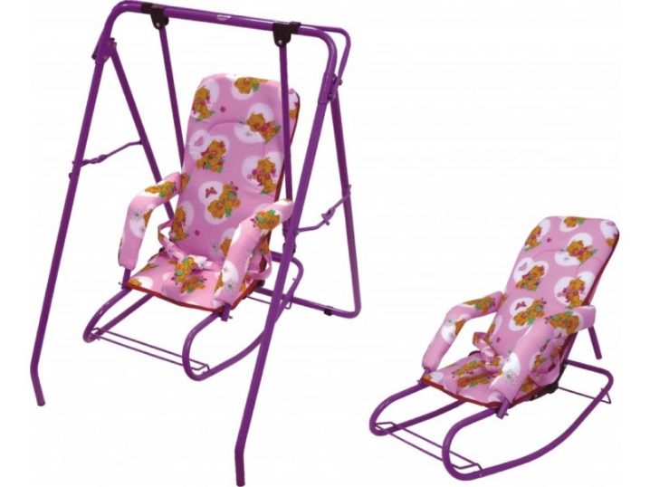 A small child will be liked if the swings are equipped with a variety of squeakers, toys and rattles. And for parents, one of the important factors of choice is the safety of the child.