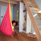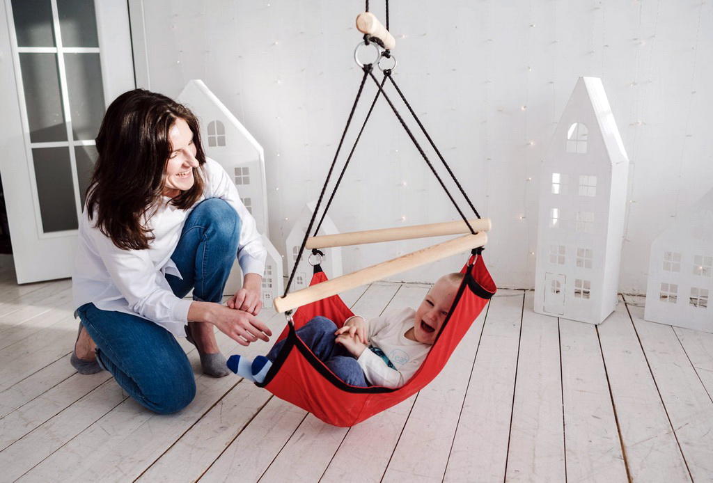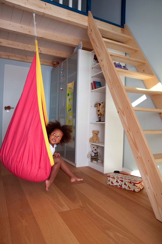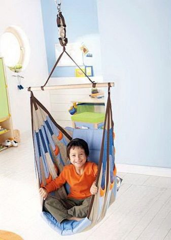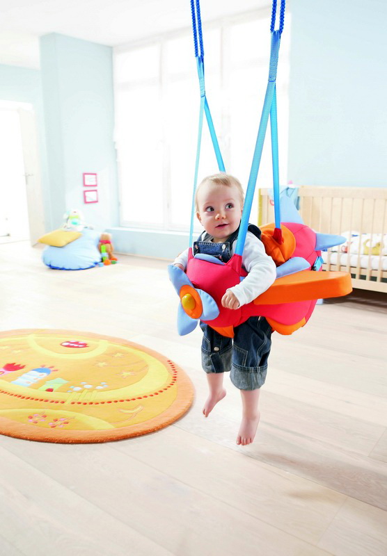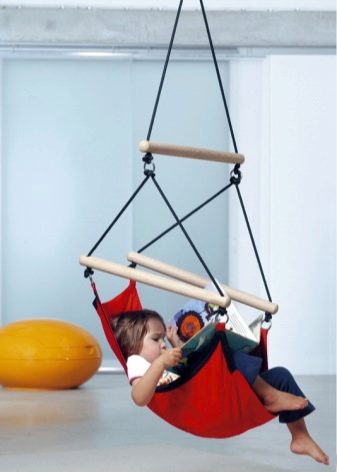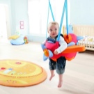 There is a kind of swing that can be adjusted depending on the age and height of the child. This is a very durable model of the swing, which can serve you for several years. Manufacturers of such swings are joking that this product is growing along with the baby. The most popular such swings are "Plisan Do-Re-Mi". This is a very unusual, but very expensive children's hanging swing for the house.