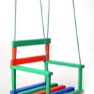 There are also flexible and solid types of suspended swing for children.The first type is more suitable for older children (4-8 years old) and contributes to the development of fine motor skills and coordination of movements. Solid suspended swing is better suited for very young children, because they are more reliable and well hold the child. Some models even have a special stand for fixing the legs.