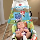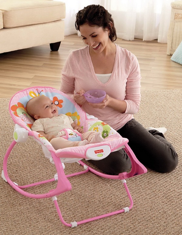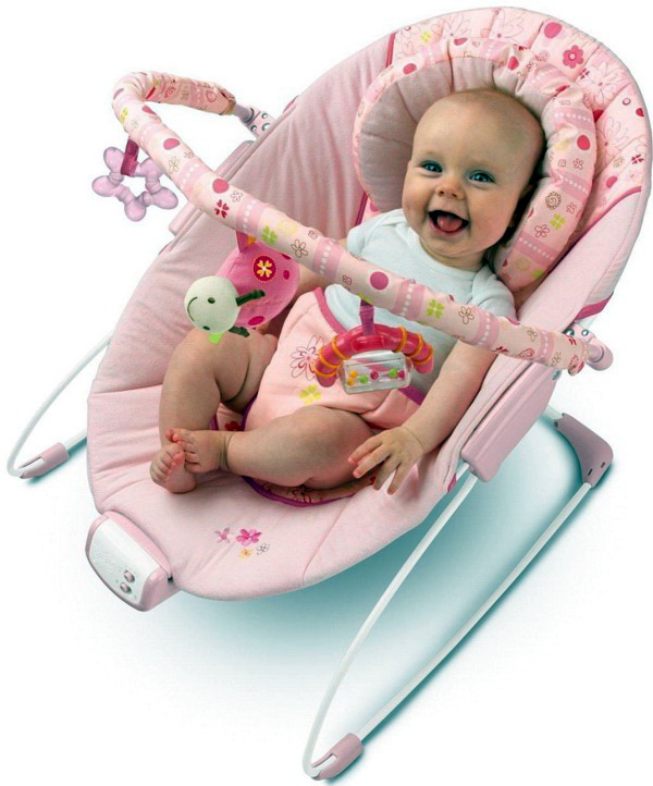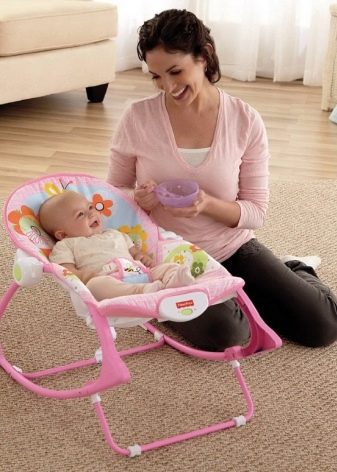 As for the device of such a swing, it is more complex than that of a conventional swing swing. As a rule, the back of this product is adjustable and can be reclined to a completely horizontal position. Such a swing is a transformer, besides its main purpose, such a rocker can be used as a carry. Swings for newborns are equipped with seat belts that securely hold the child.