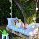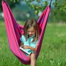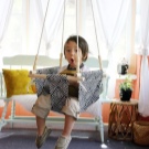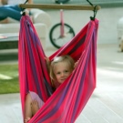 Another type of children's hanging swing is a wicker swing. This product is considered to be absolutely ecological. It consists entirely of weaving fairly dense fabrics, and as a rule, in its manufacture materials are used in the brightest shades to attract children's attention. Such swings look very bright and stylish and skillfully fit into any home interior.