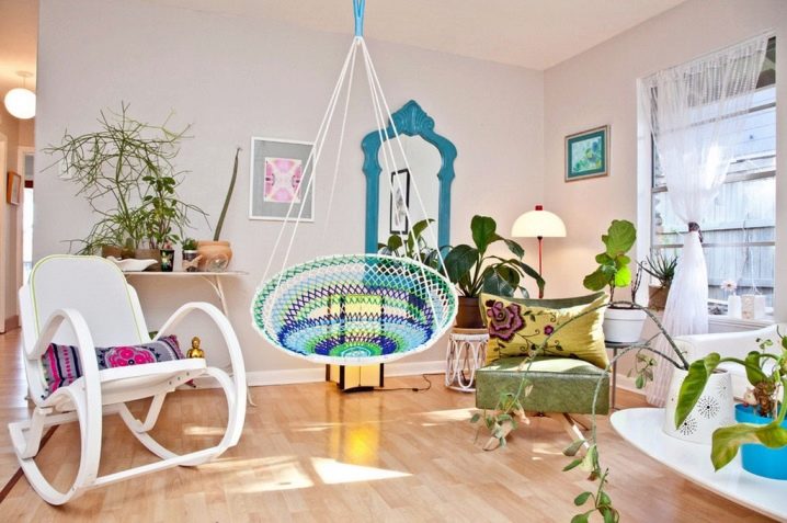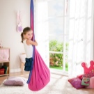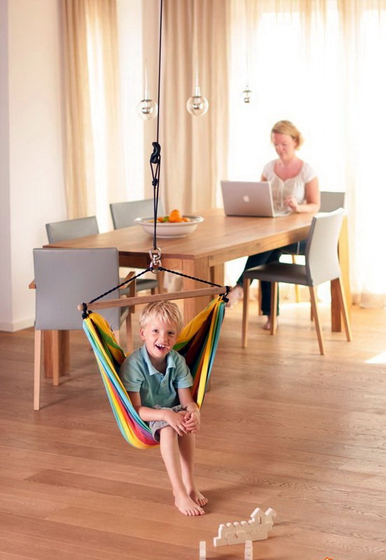 Especially it is necessary to note such quality of a suspended swing, as their mobility. This design can be easily transferred from one room to another, as well as put into a closet, if the swing interferes, for example, when you are waiting for guests. In addition, usually suspended swing have a small weight, they are easy to fold. Manufacturers are trying to protect them as much as possible, avoiding sharp and right angles when creating a swing design.