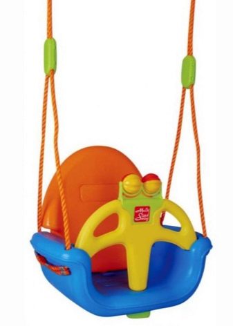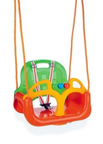 Plastic swings are considered the most unreliable. Such material is very easy to spoil or break, it is suitable only for small children with low weight. In addition, plastic is an absolutely unnatural material that can have a harmful effect. But compared to iron models, plastic swings are lighter, safer and warmer.Such a product will be completely safe if you add protective textile covers to its design.