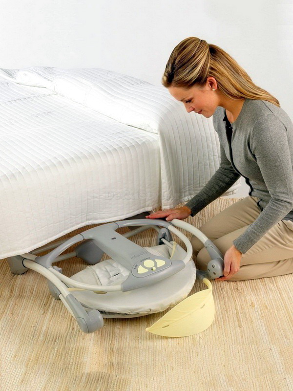 But there are also negative sides of a swing for newborns. Such a design, with frequent use, can have a negative effect on the baby, namely, it can disrupt the child's mode, since the baby falls asleep very easily during rocking, and this subsequently disrupts the child's nighttime sleep. In addition, the newborn can get used to falling asleep, swinging in a swing and after will not be able to fall asleep in a regular bed. Consider that it is possible to rock the newborn in such a swing for no more than half an hour, and after eating the doctors categorically do not recommend it.