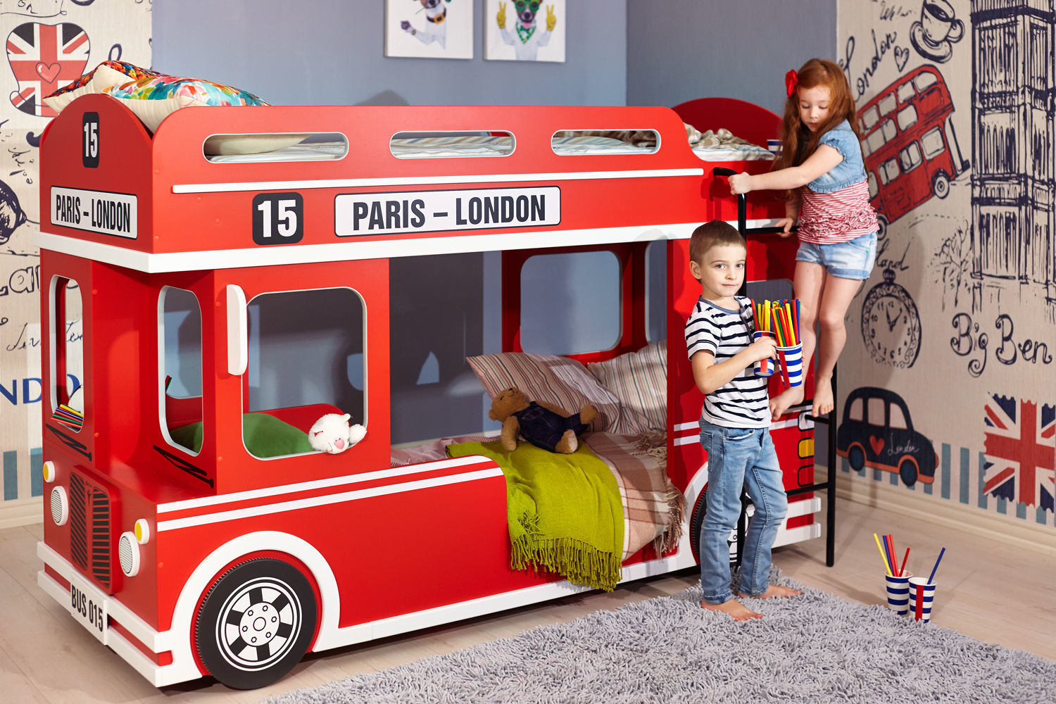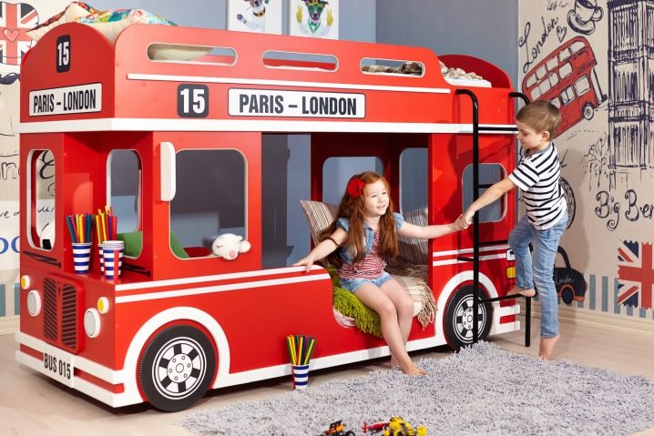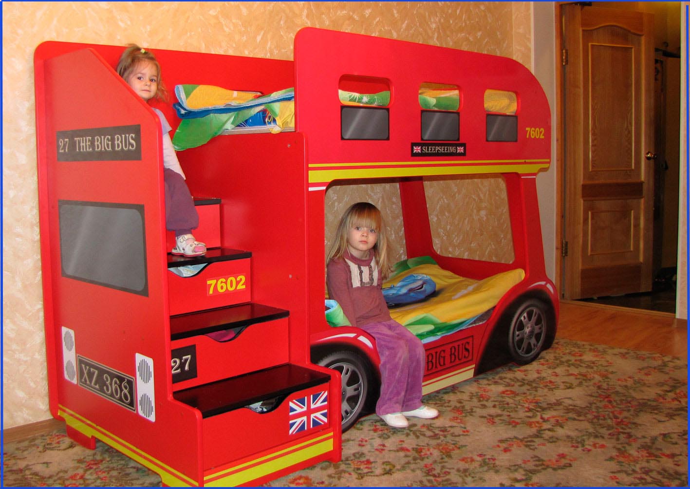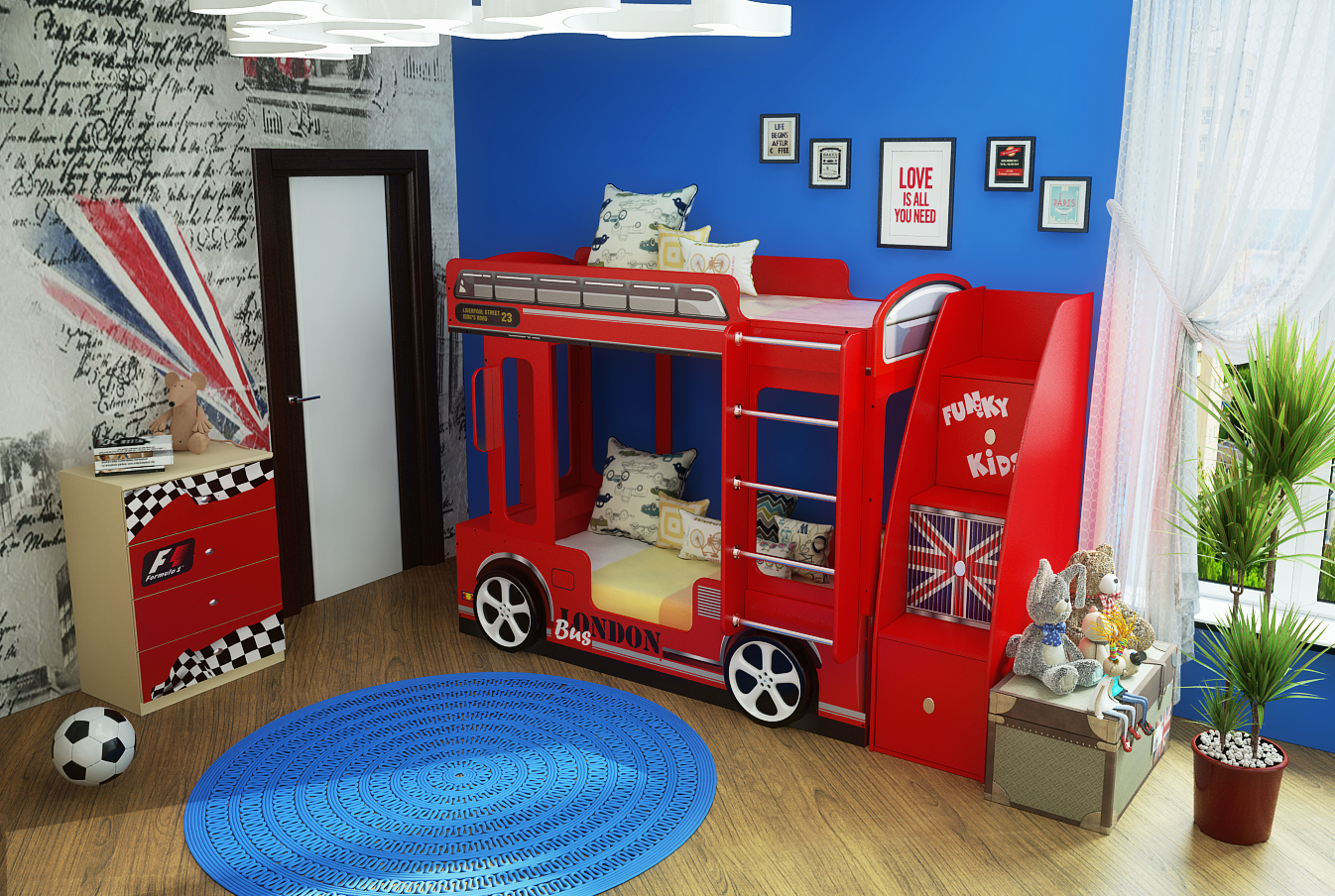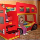 A bunk bed is suitable for two tomboy boys, but girls will also like it. Especially if the bus will model London Bus. This red bus was loved not only by the British, but also all over the world, and the children who have ever seen him live will be delighted to sleep on the bed in the form of such transport.