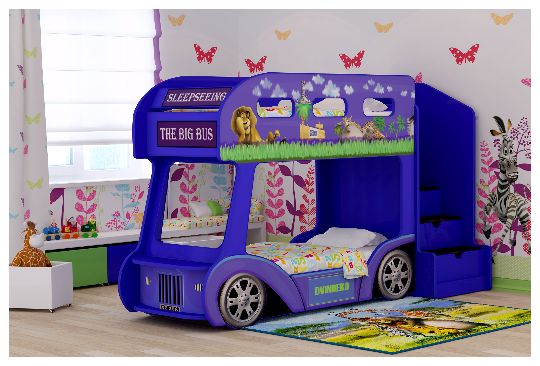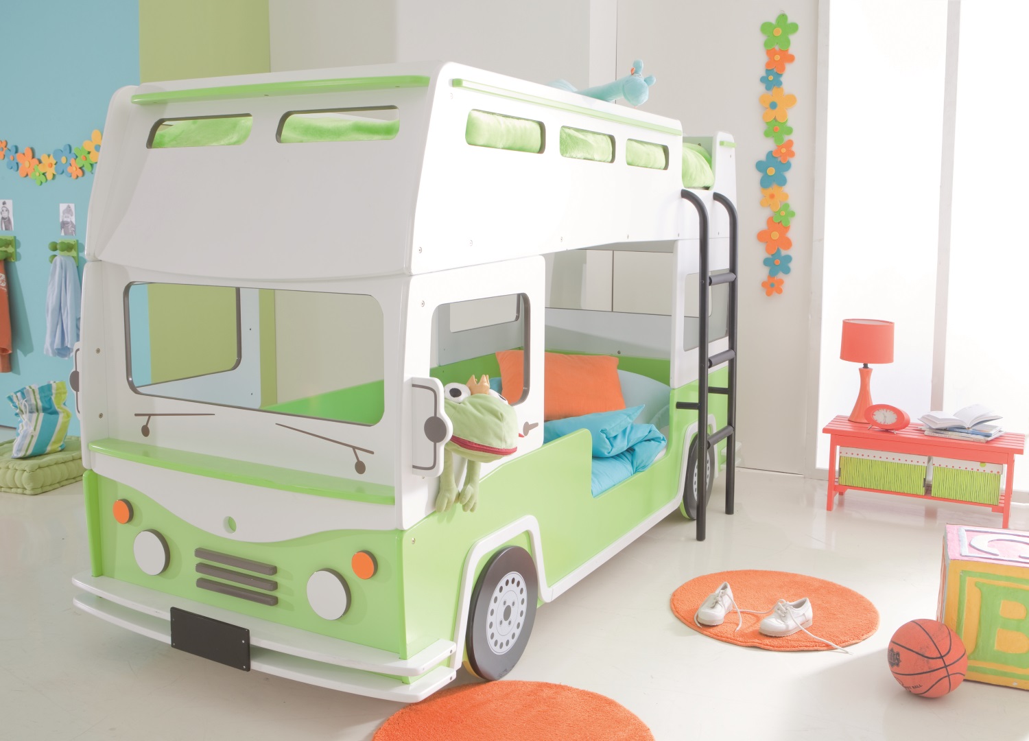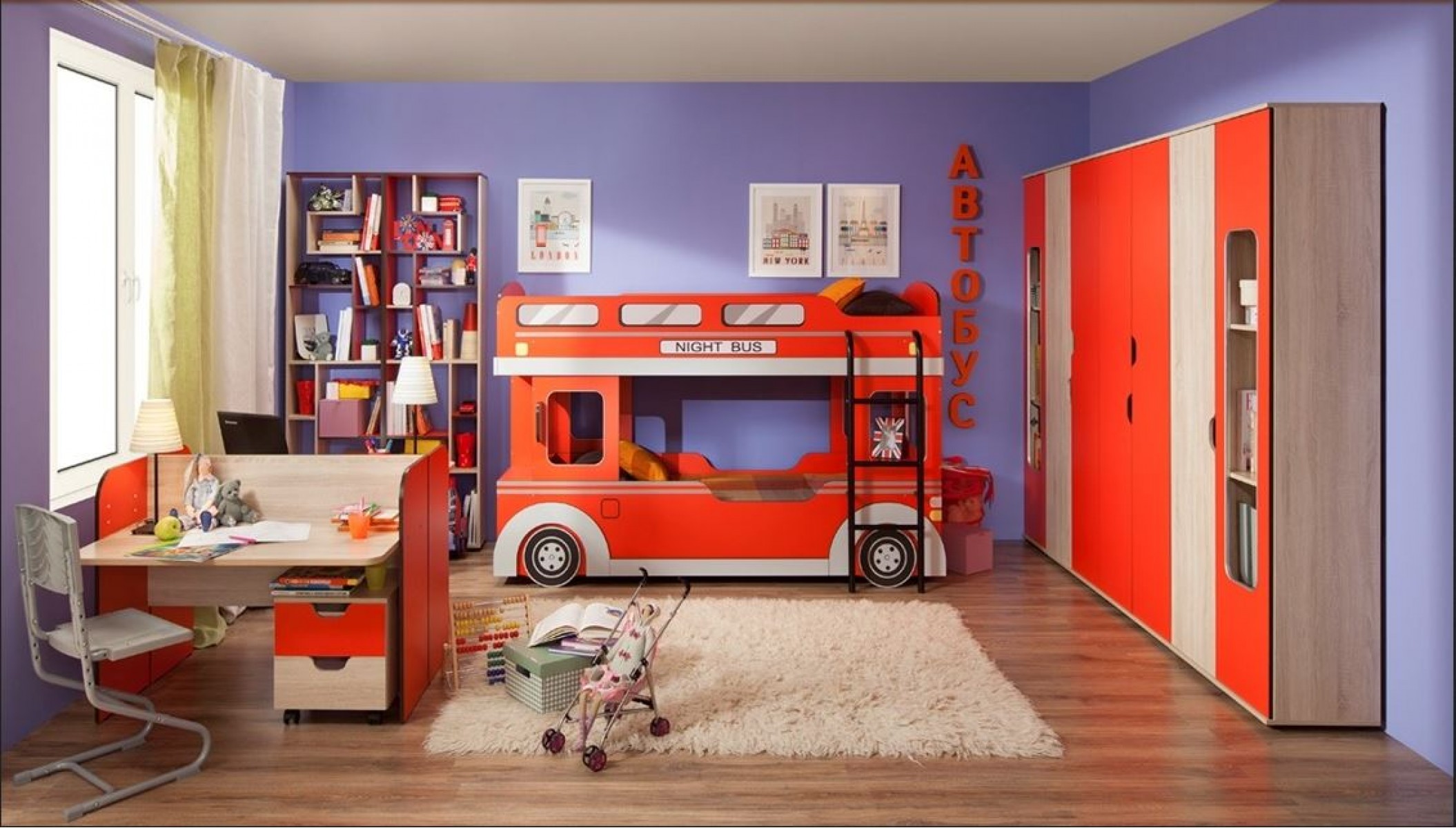 The colors of the bus beds are a huge variety, white, blue, green, red, pink and various shades of these colors. You can choose the color in accordance not only with the interior of the nursery, but with the preferences of your child, and not only the boy.