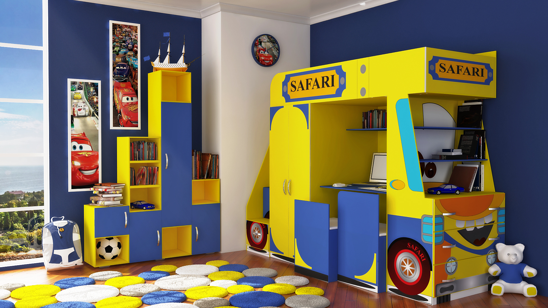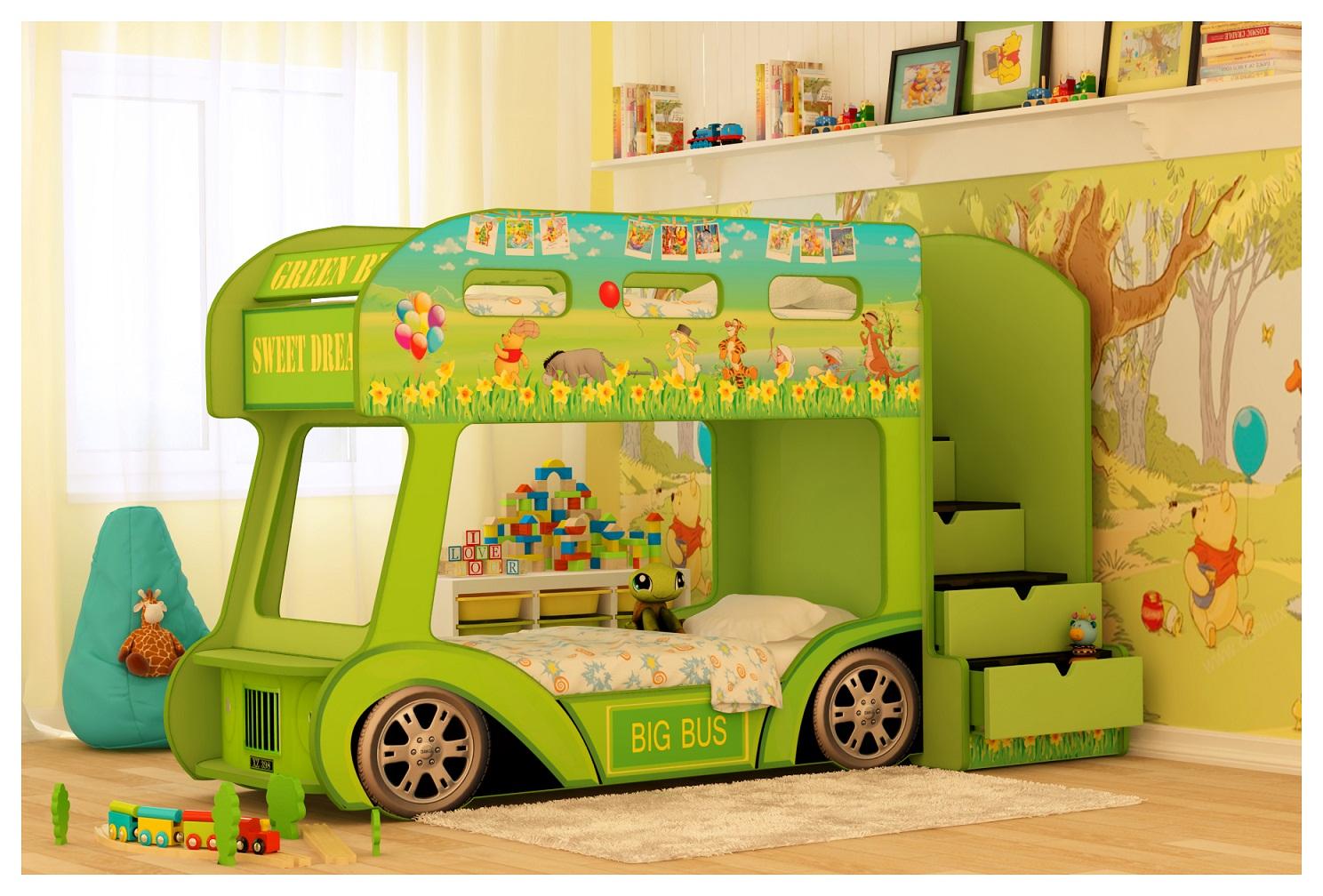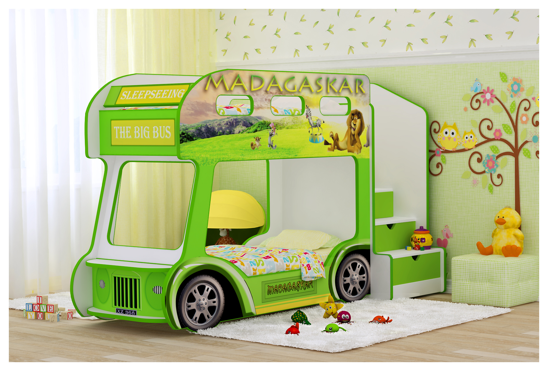 The colors of the bus beds are a huge variety, white, blue, green, red, pink and various shades of these colors. You can choose the color in accordance not only with the interior of the nursery, but with the preferences of your child, and not only the boy.