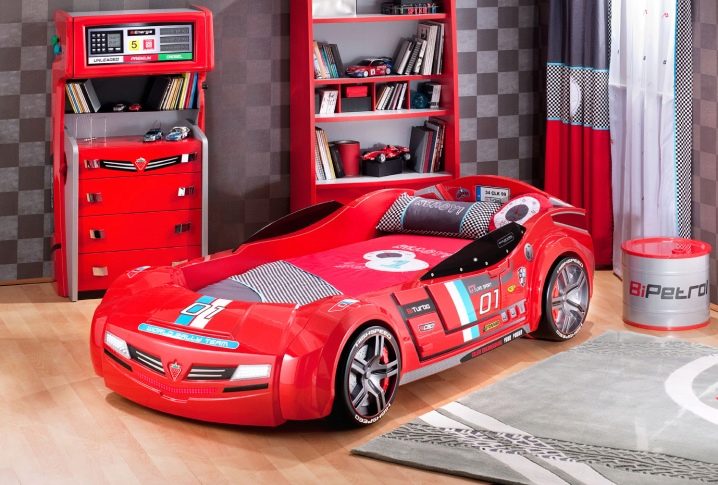 The same modification in the form of bus beds is represented by a wide range of models. A red car, very reminiscent of this model in reality, will not leave indifferent any boy. In addition, many cots in the form of a bus, truck, car, tank are equipped with luminous lights, illuminated bottom.