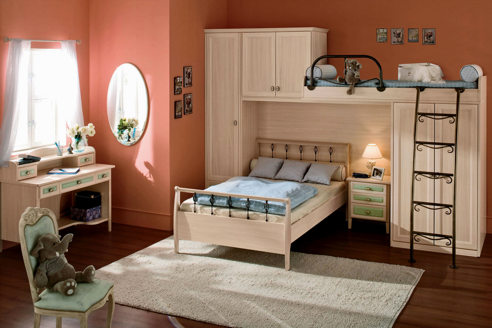 These beds include not only a bed, but, for example, a place to study or relax. The bed is located much higher than regular beds. Free space from the bottom is used with maximum benefit. You can put a table there or attach a wall bars.