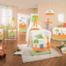 The material should choose soft shades, so as not to disturb the calm of the child before bedtime. Also, the colors should be combined with the interior and color of bed linen.