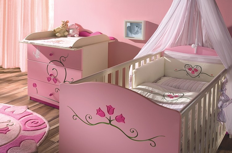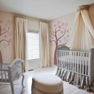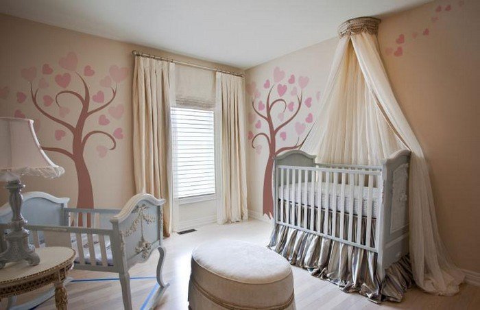 In addition, the canopy over the crib looks very beautiful. Especially important for girls, because mothers want to instill a sense of beauty from birth.