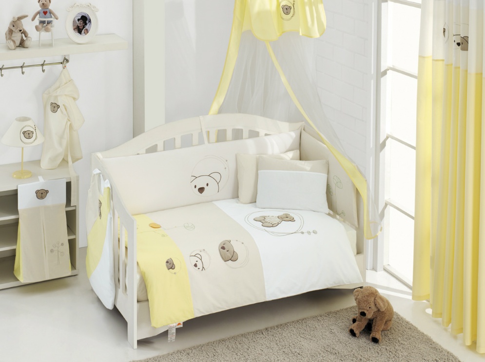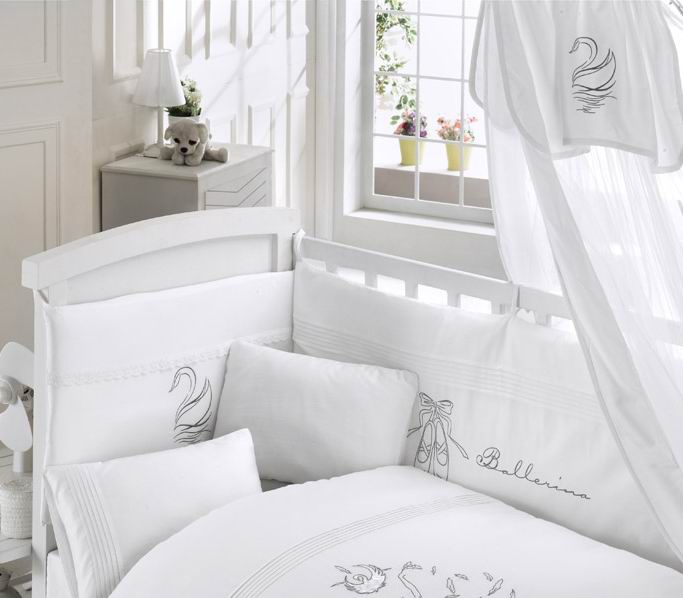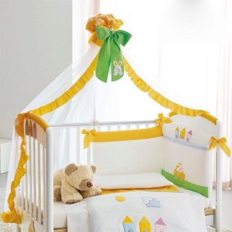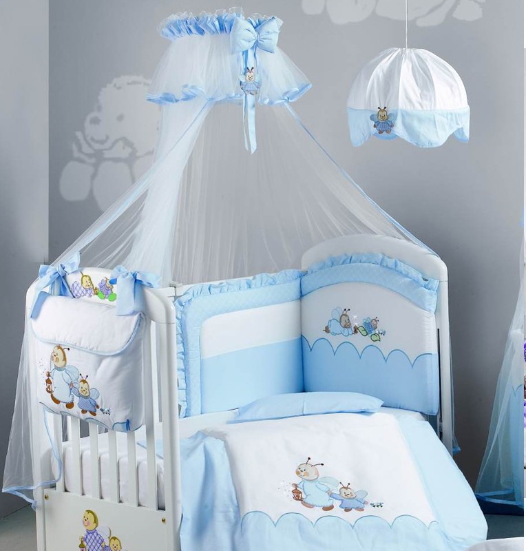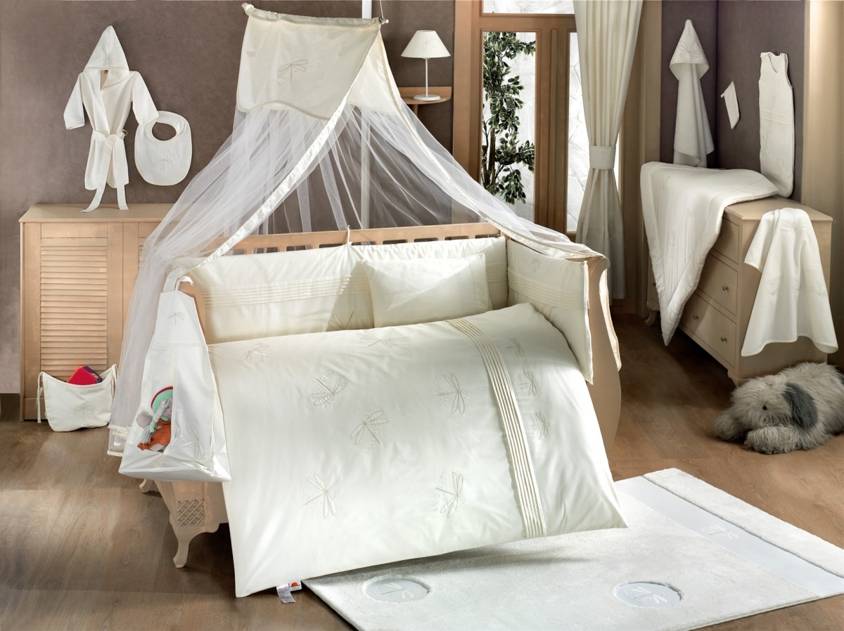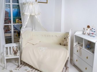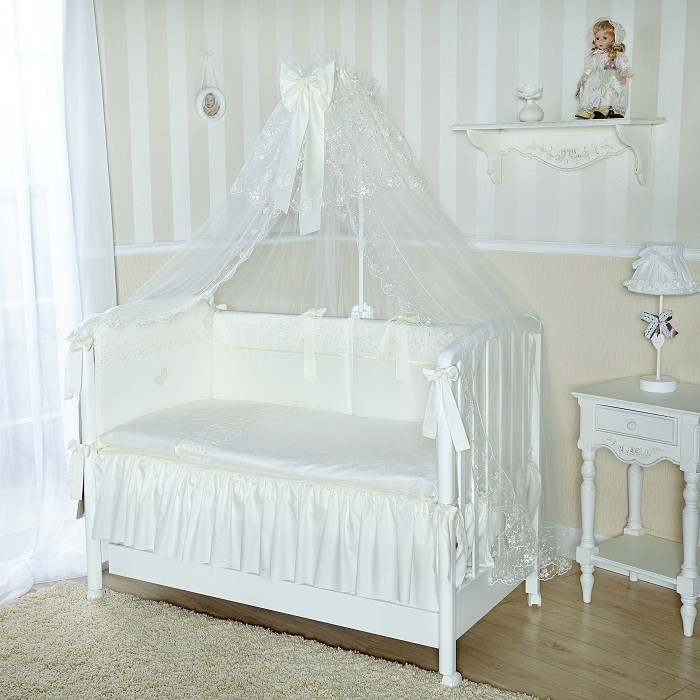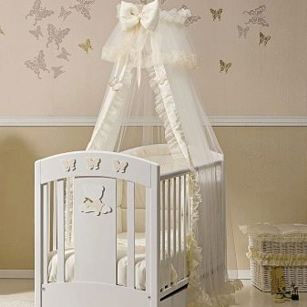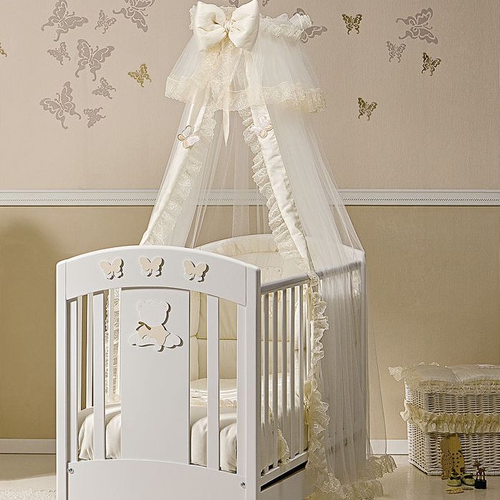 White color - the most winning option. It is perfect for both boys and girls. The fabric can be decorated with various applications. Butterflies and flowers can create a fabulous atmosphere in the bedroom.