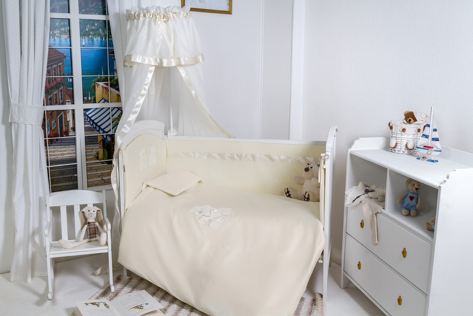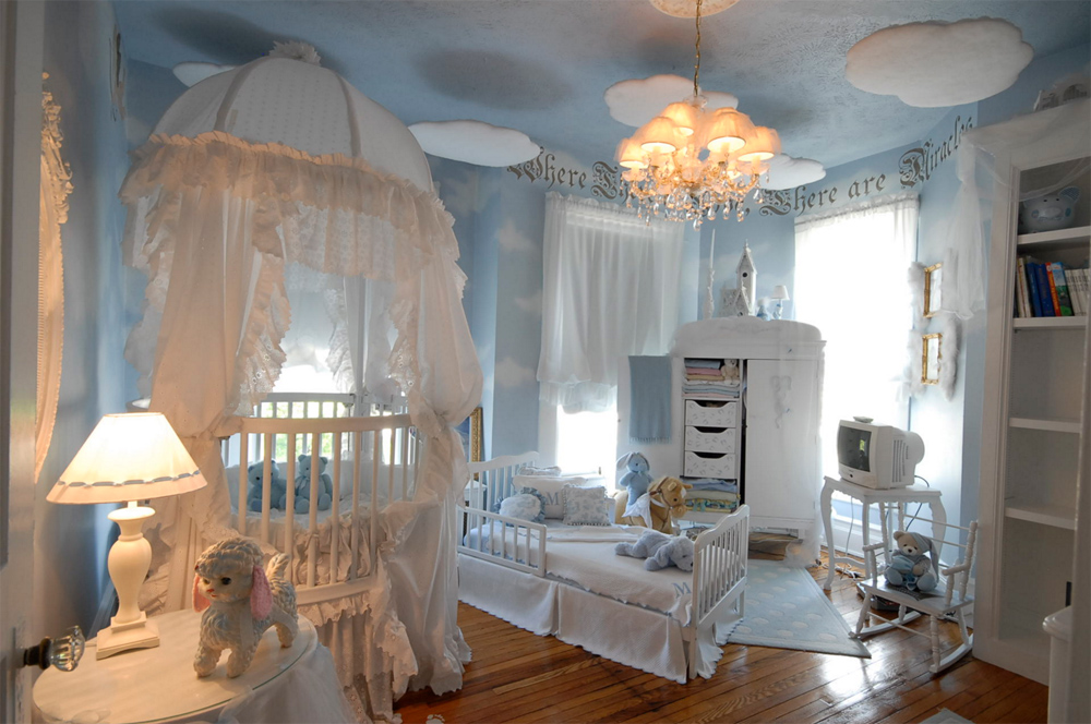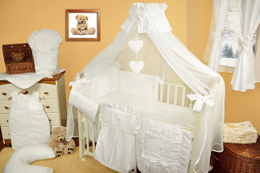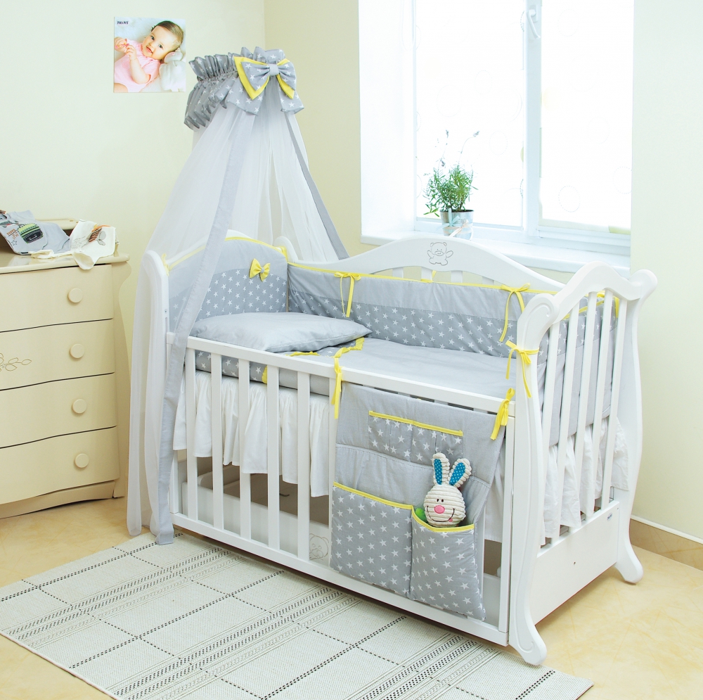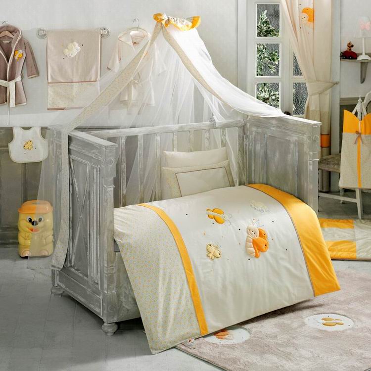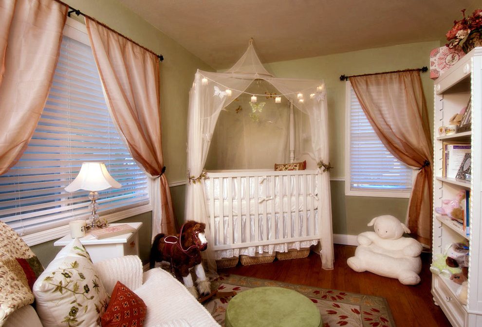 White color - the most winning option. It is perfect for both boys and girls. The fabric can be decorated with various applications. Butterflies and flowers can create a fabulous atmosphere in the bedroom.