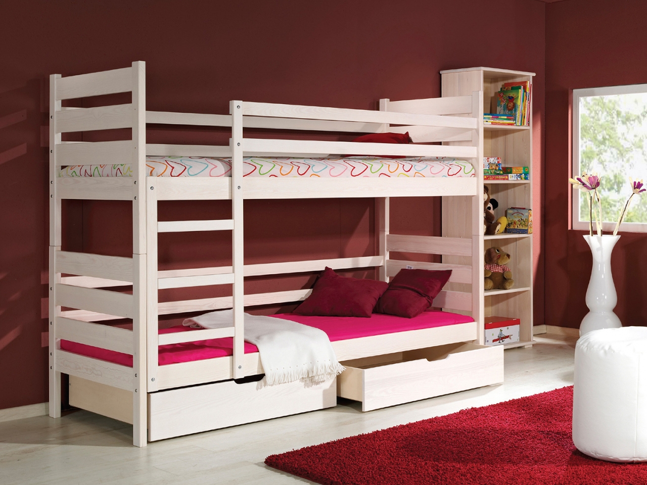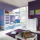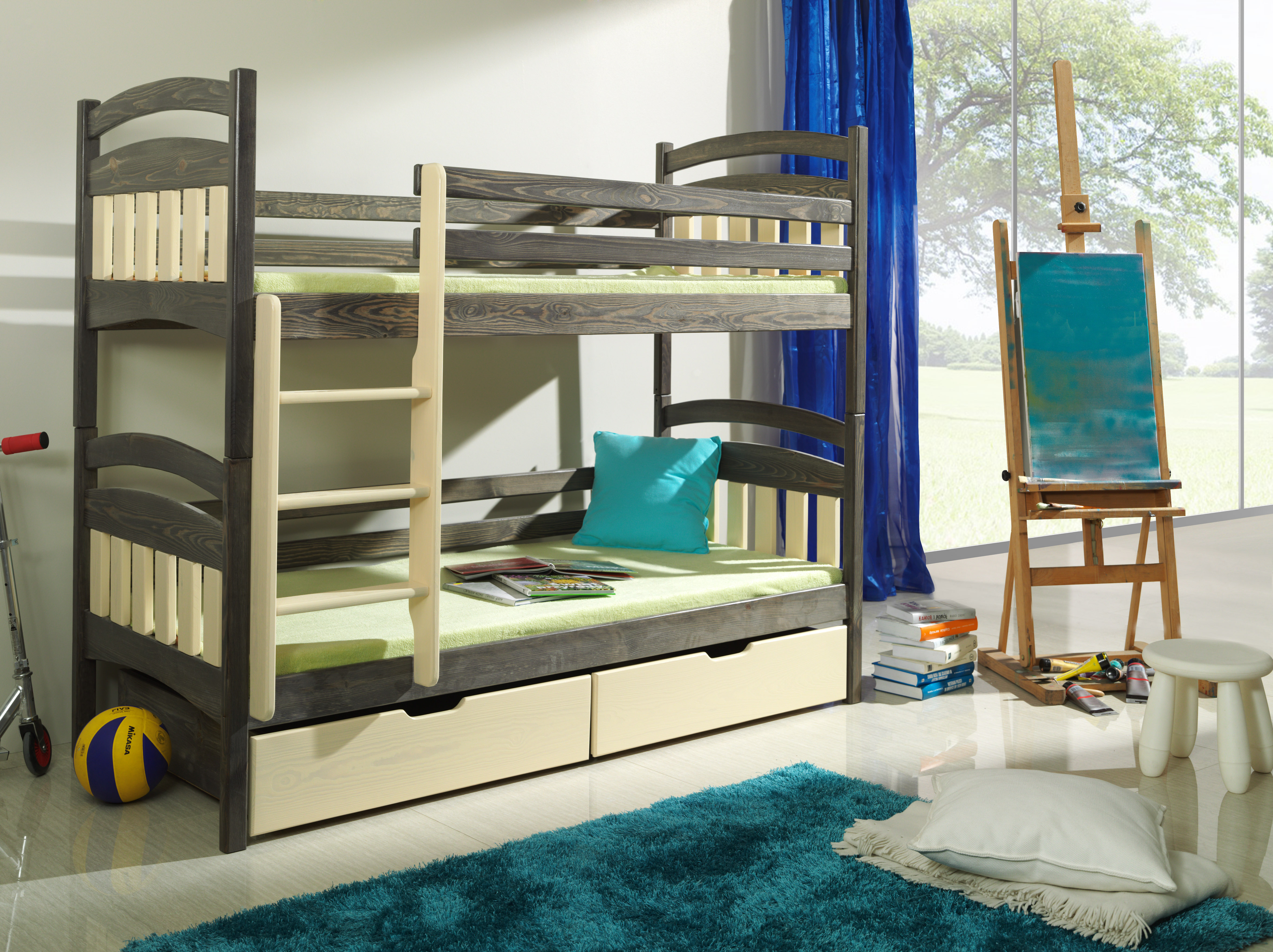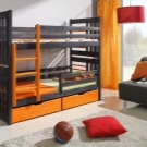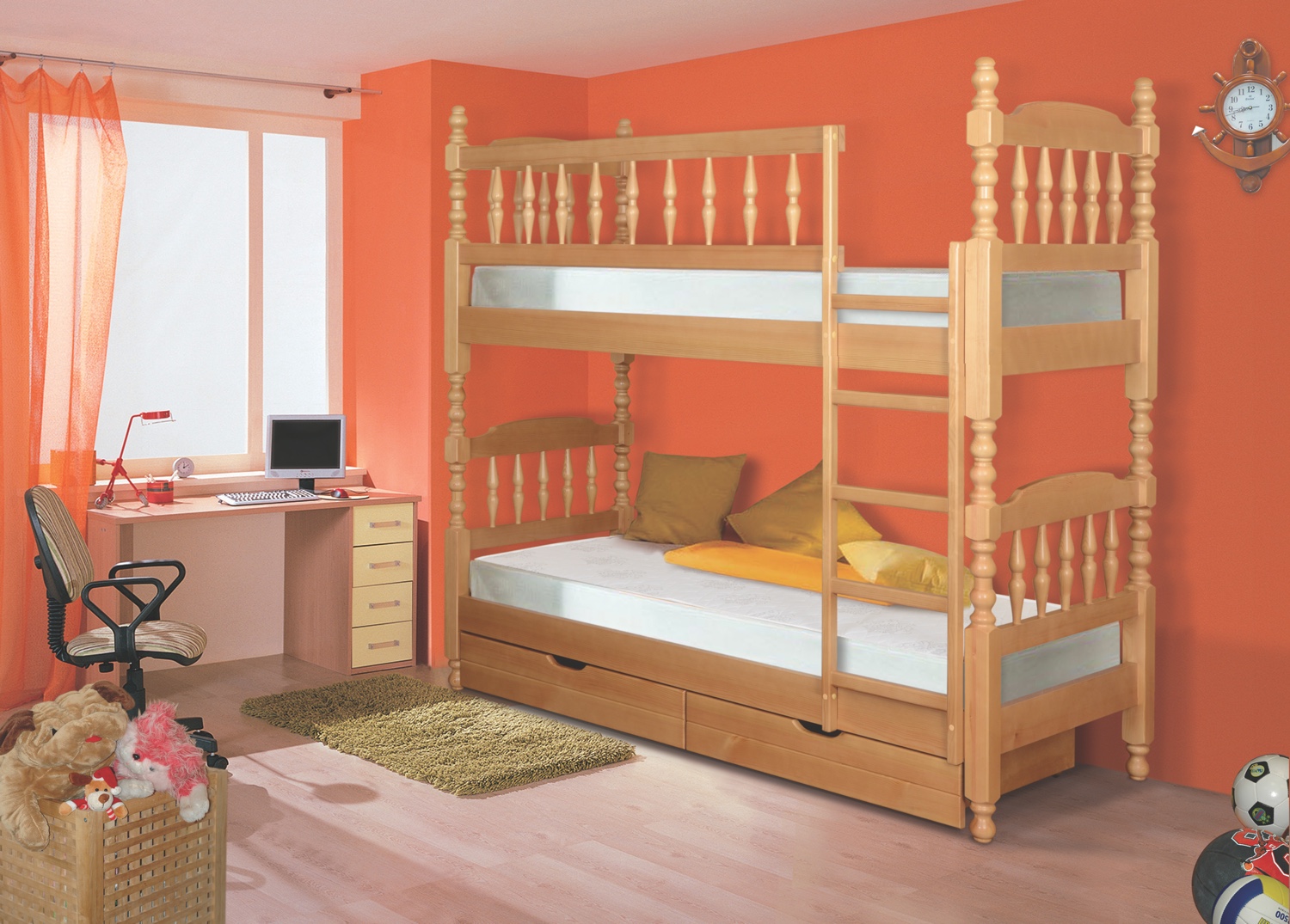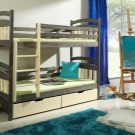 Toris produces furniture from solid wood, the line of cots is called MIA. The frame is made of pine, beech, oak and can be faced with veneer. The manufacturer offers a choice of models with one-sided mounting of the ladder (MIA 3 and MIA 4),and with the possibility of mounting on either side (models MIA 1 and MIA 2 have a side in the center of the second tier and a place for fastening the stairs on both sides) MIA 6 and MIA 6 are distinguished by the presence of drawers. Height of a bed is 185 cm.