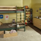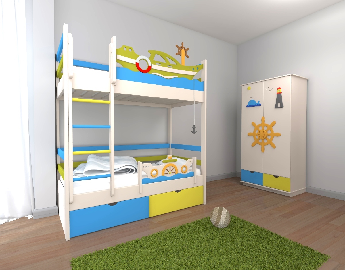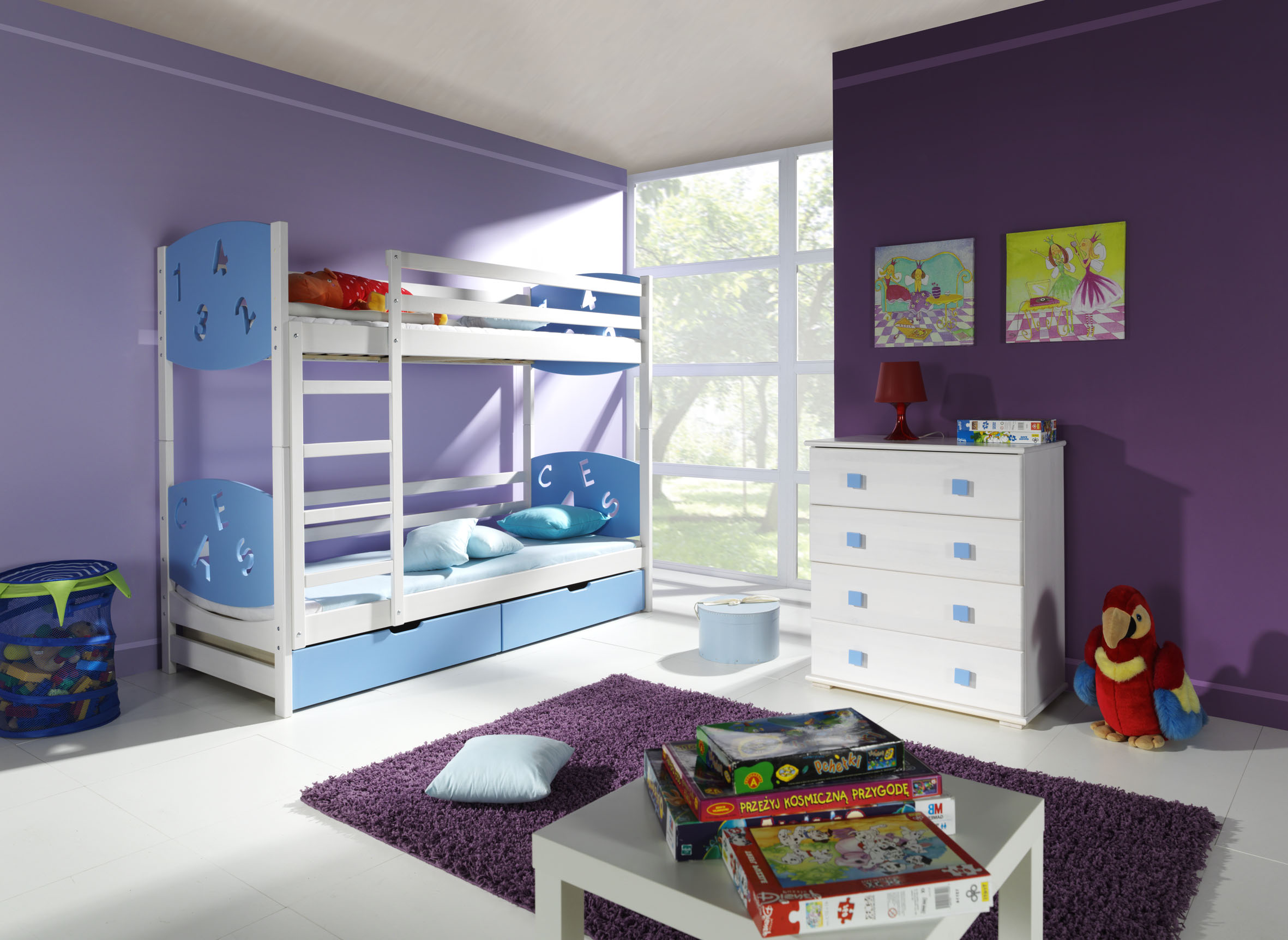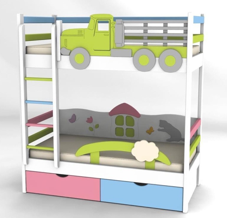 Toris produces furniture from solid wood, the line of cots is called MIA. The frame is made of pine, beech, oak and can be faced with veneer. The manufacturer offers a choice of models with one-sided mounting of the ladder (MIA 3 and MIA 4),and with the possibility of mounting on either side (models MIA 1 and MIA 2 have a side in the center of the second tier and a place for fastening the stairs on both sides) MIA 6 and MIA 6 are distinguished by the presence of drawers. Height of a bed is 185 cm.