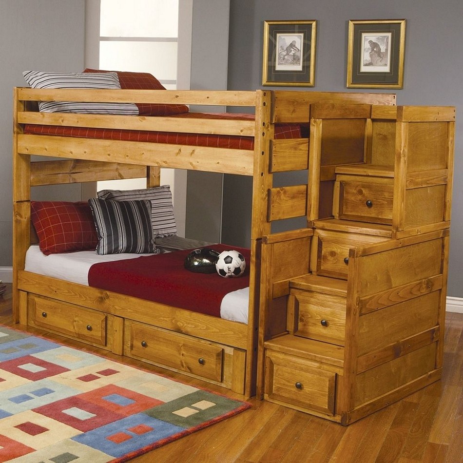 The best option for a bunk bed would be oak and larch. Larch belongs to coniferous species, but is light, strong and durable. In addition, the tree is very moisture resistant, not subject to mold, rotting and insects.