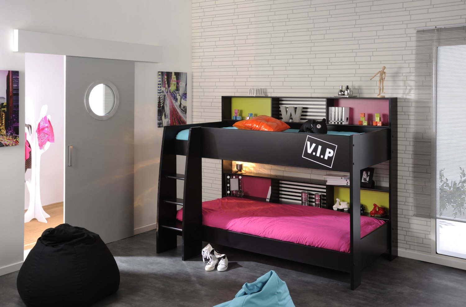 The main feature of bunk beds is space saving. Even if there are two beds - at the top and bottom, designers can easily fit on the sides of the bed a built-in wardrobe, shelves, drawers and other elements that simultaneously perform several functions (for example, step boxes to the second floor, a transforming table that understands bed).