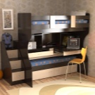 Bunk beds with a sofa downstairs. These beds are suitable for both two children and one child. In the second case, on the upper tier, the child will only sleep, and will be able to spend time on the sofa, thereby keeping the sleeping place clean.