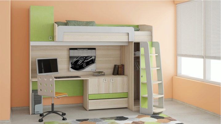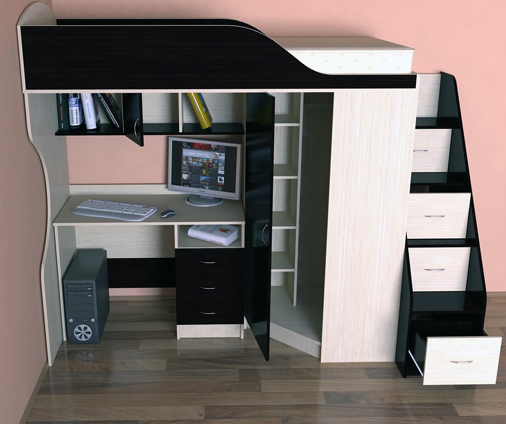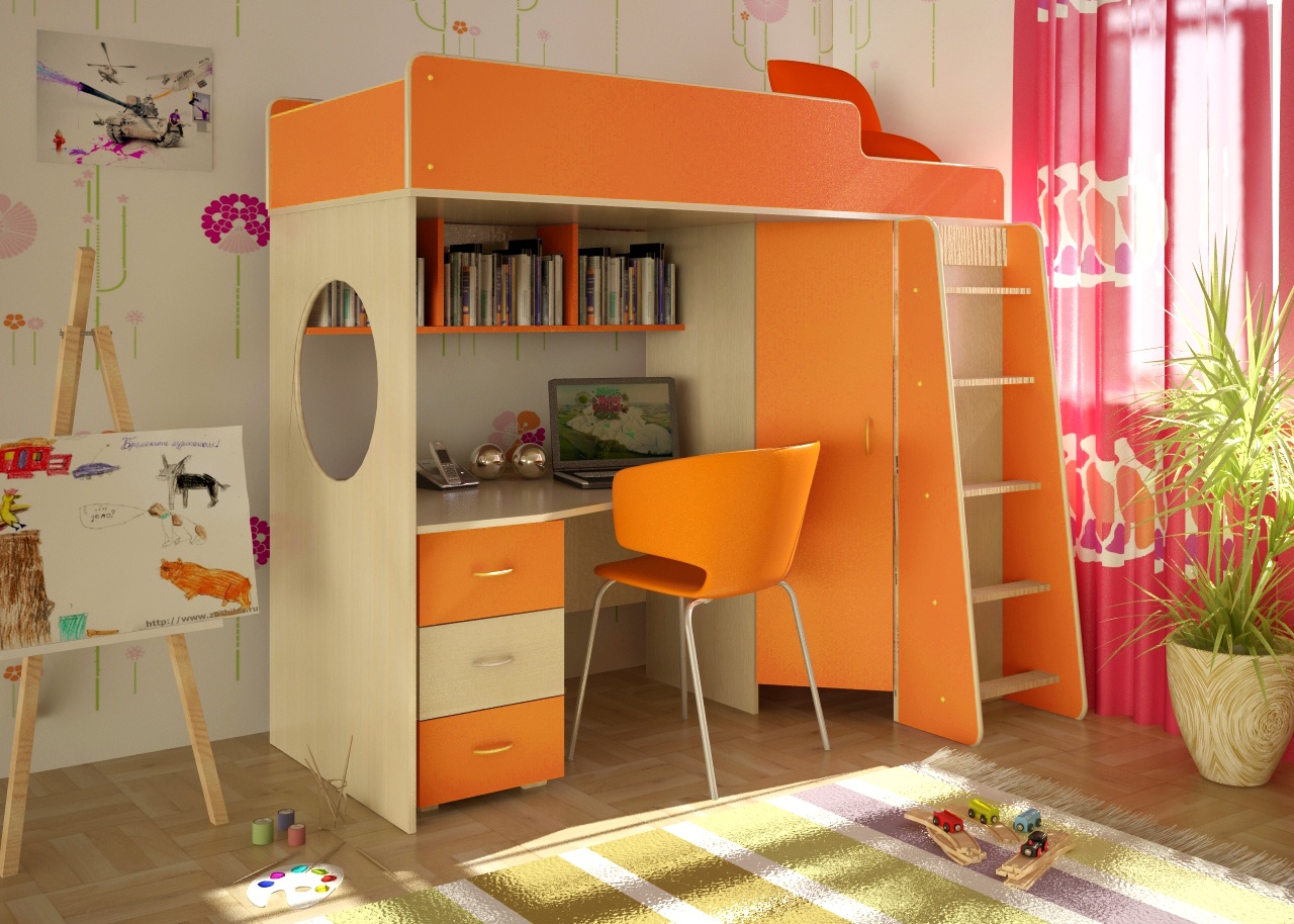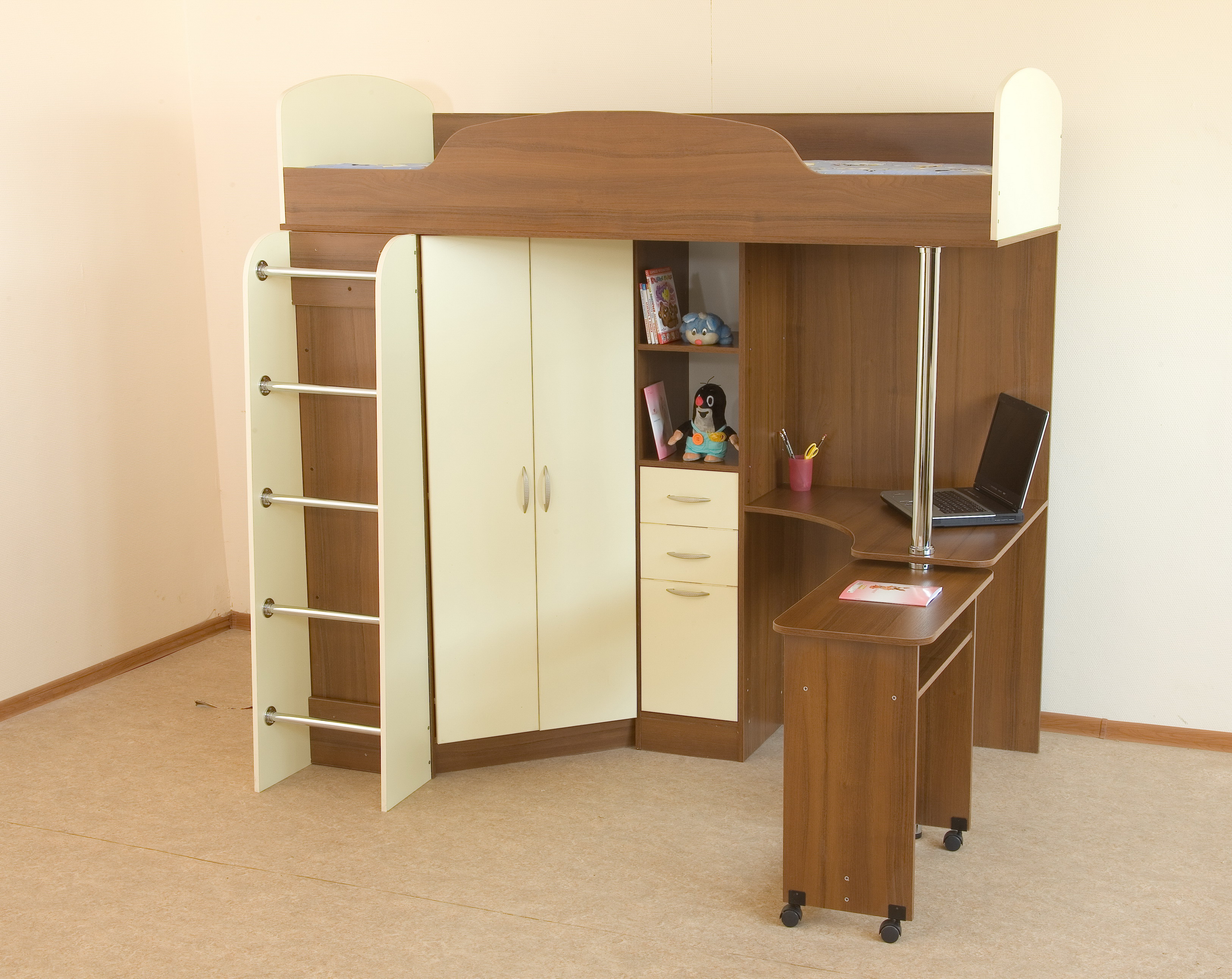 You can also purchase the so-called loft bed, where upstairs there will be a place to sleep, and below there are various lockers with a table.