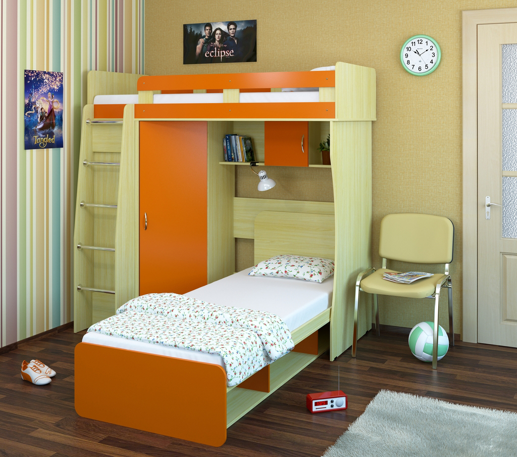 It happens very hard in a small apartment to make room for a full-fledged bed for a child, and what to do if there are two or more kids? The bunk bed will come to the rescue. Fortunately, the varieties of design, material and colors are huge.