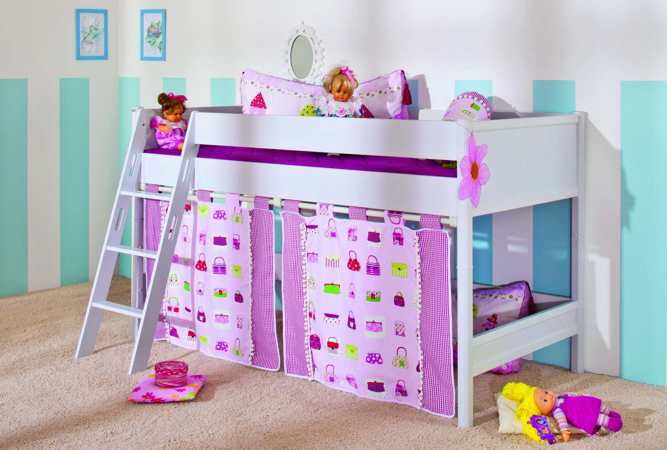 Massive bed for princesses. Suitable for girls of six years, and for teenagers, and the opportunity to close the bed with curtains will create a separate space for the girl. Suitable for romantic ladies.