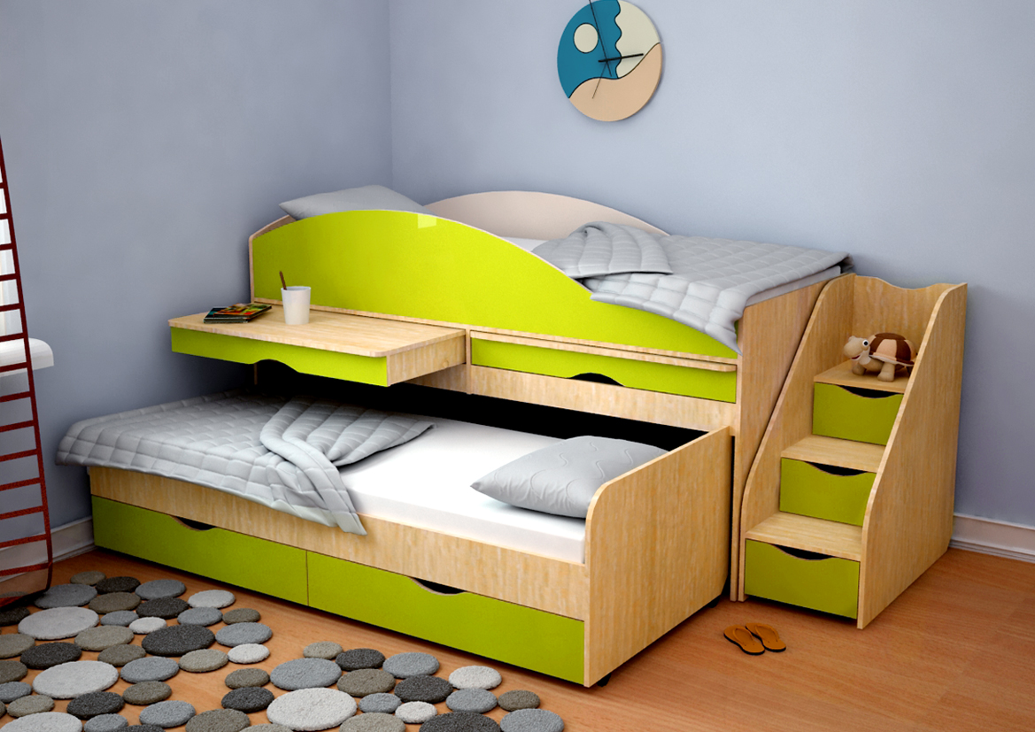 - The lower bed can be transformed into a table. This bed is comfortable, as it does not require additional space for a desk.