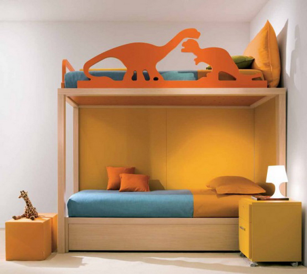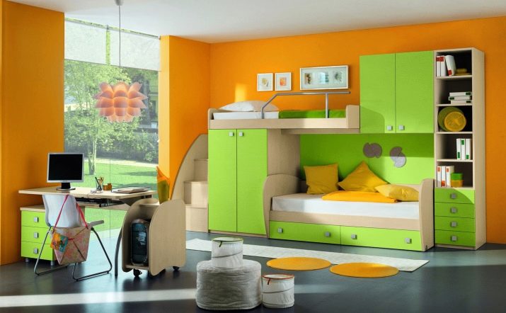 For boys, bed colors should be blue, brown, greenish. The bed can be designed in the form of a tent, a ship, or a bus. For children of different sexes, you can arrange beds with textiles in accordance with the floor, so that there is a clear separation, or you can buy a bed of neutral color.