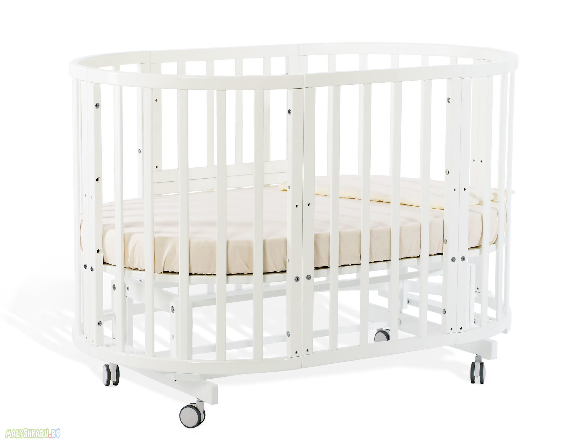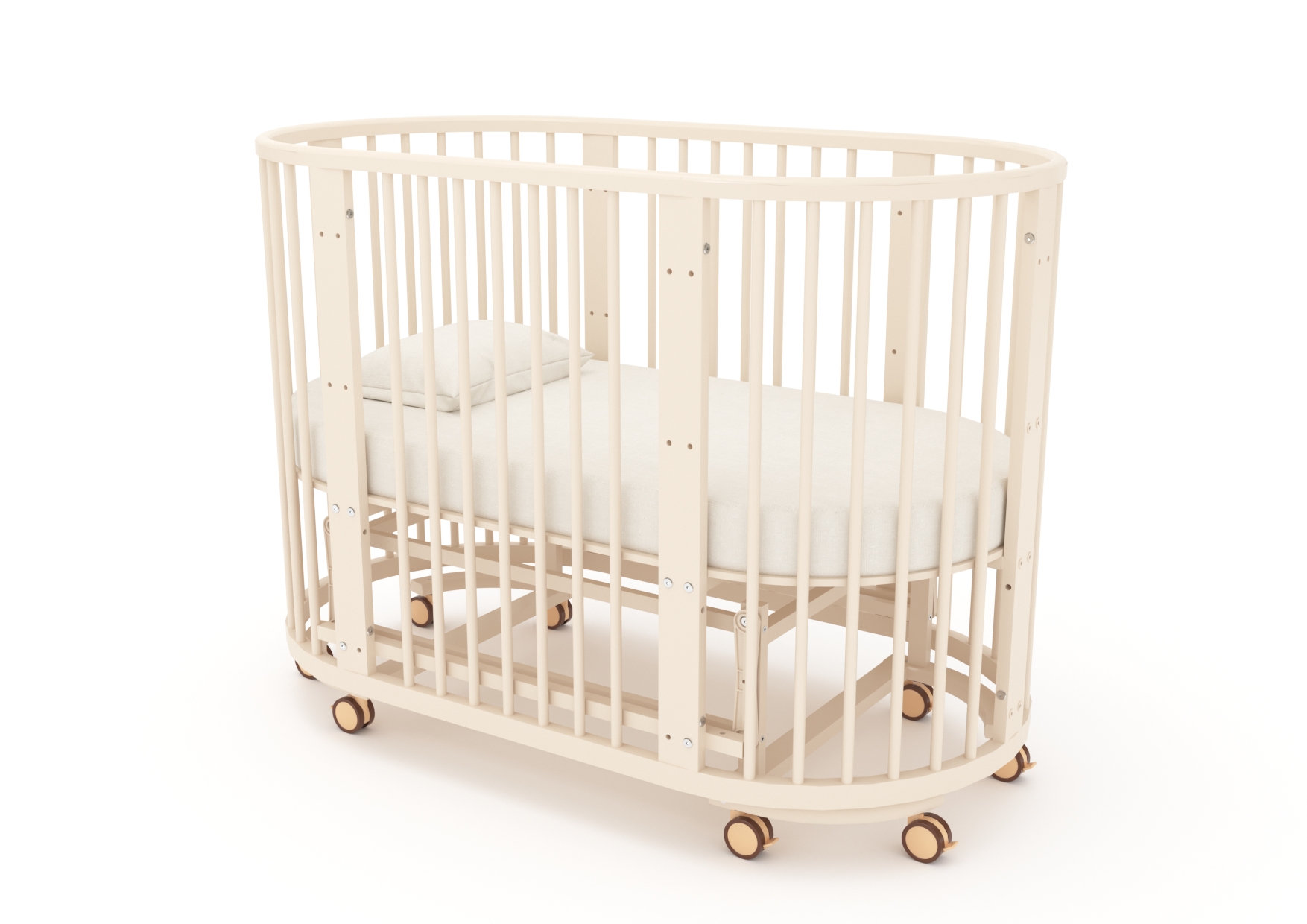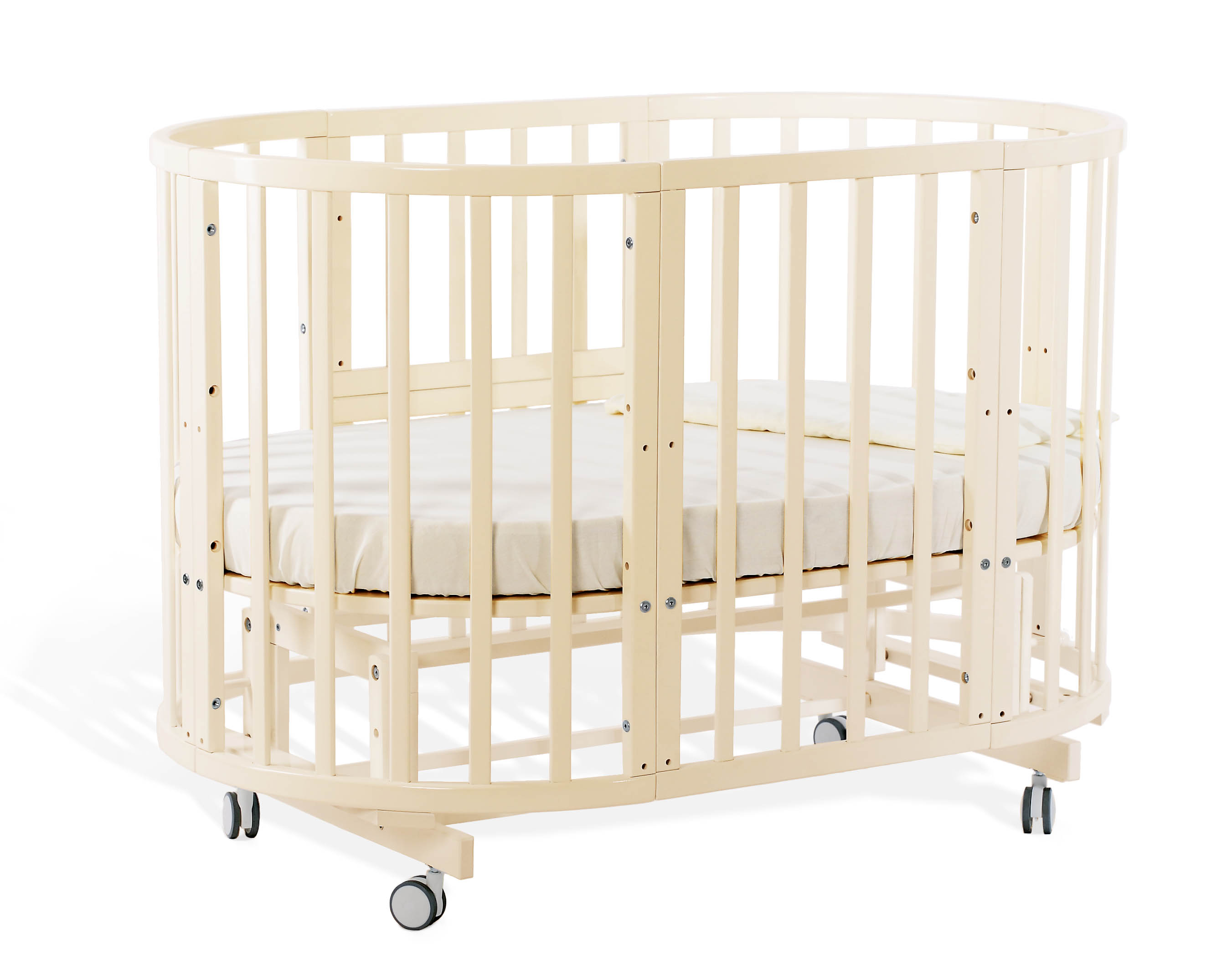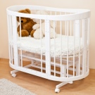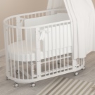 This brand produces an oval Nicole transforming bed with three positions of a berth, eight wheels, and even the ability to transform into several other pieces of furniture.The size of the bassinet is 75 by 75 centimeters, and the size of a full bed, which can be a playpen or a sofa 125 by 75 centimeters.