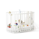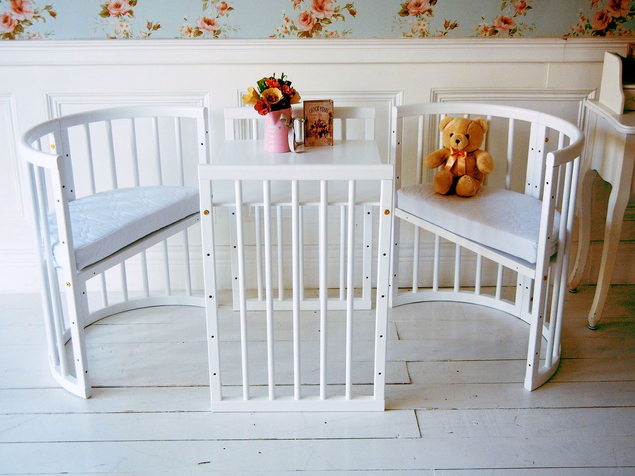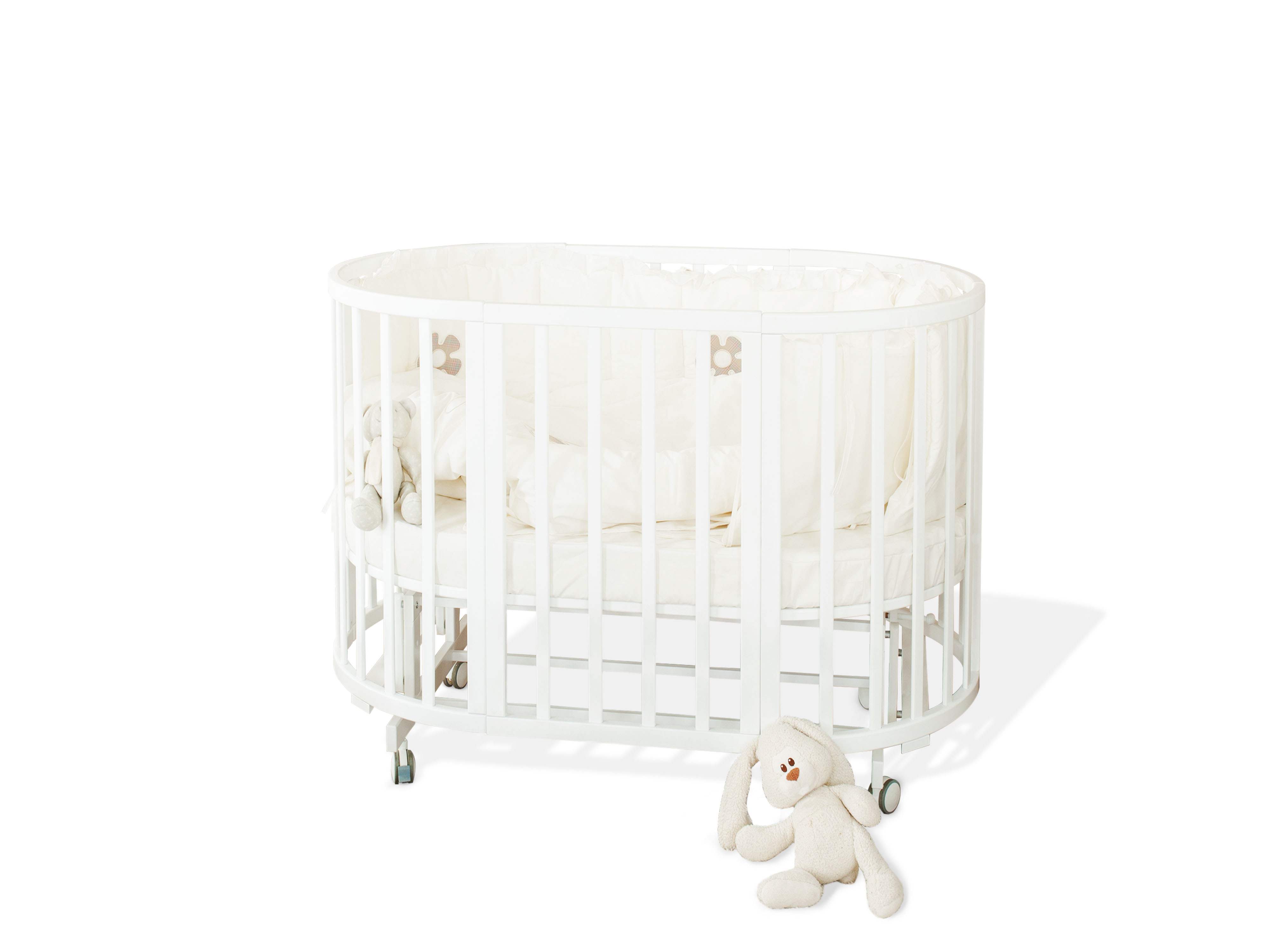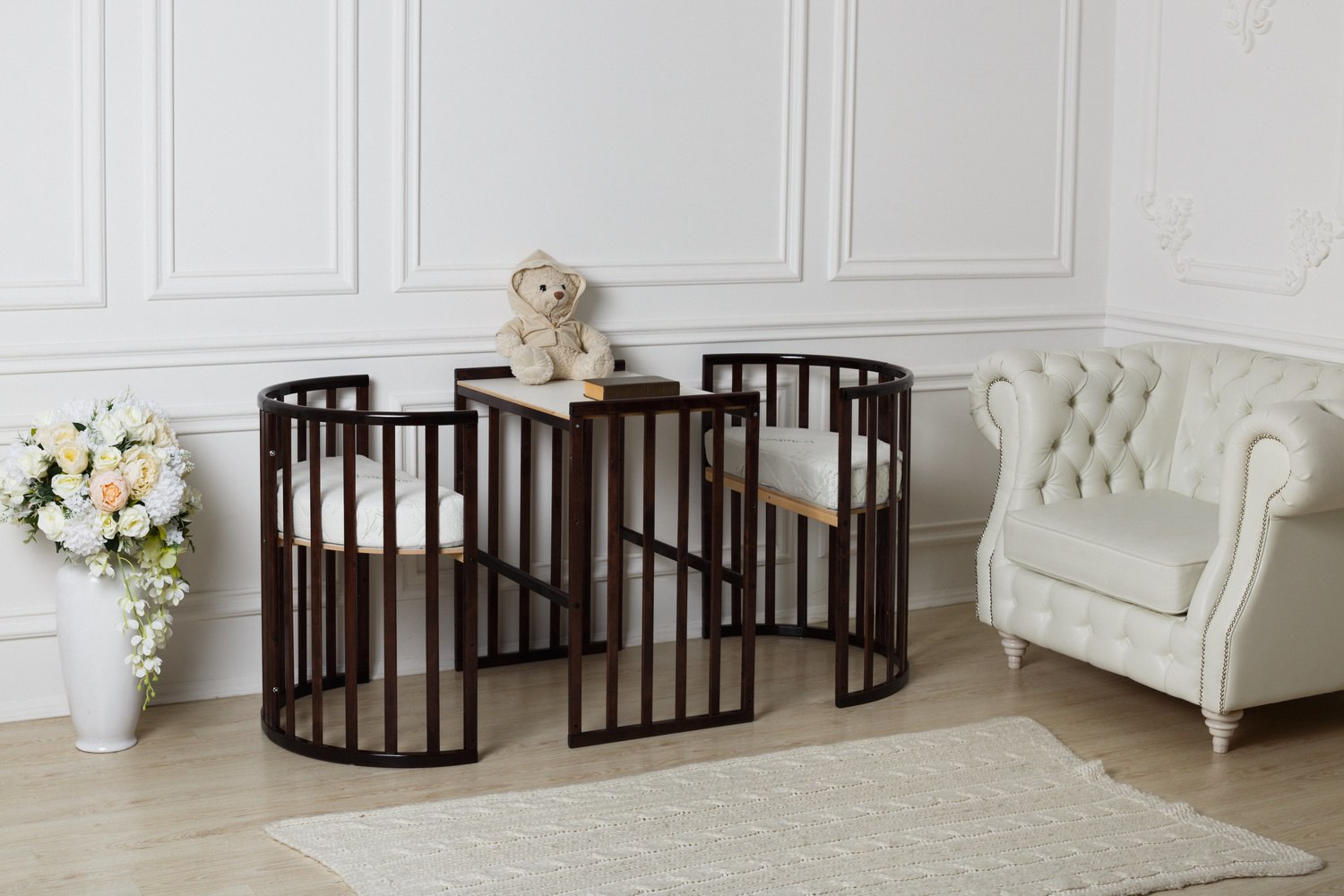 This brand produces an oval Nicole transforming bed with three positions of a berth, eight wheels, and even the ability to transform into several other pieces of furniture.The size of the bassinet is 75 by 75 centimeters, and the size of a full bed, which can be a playpen or a sofa 125 by 75 centimeters.
