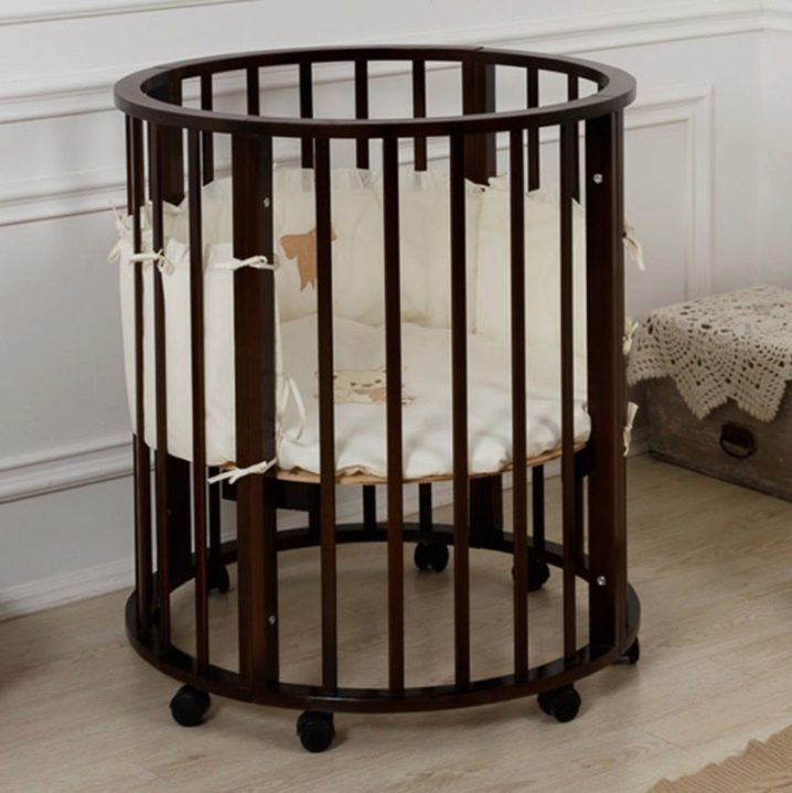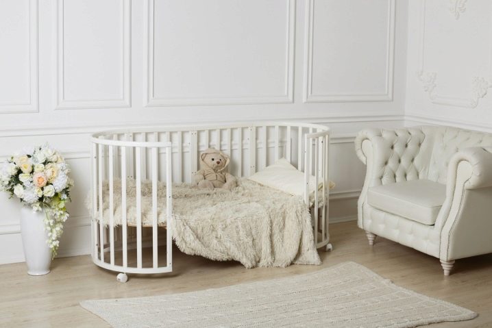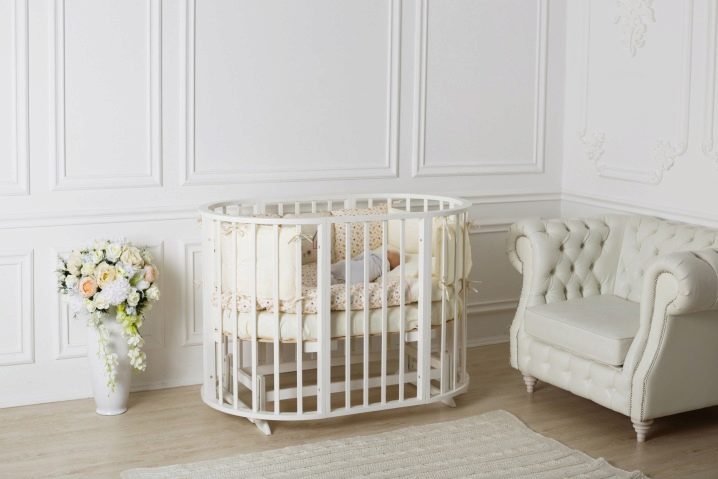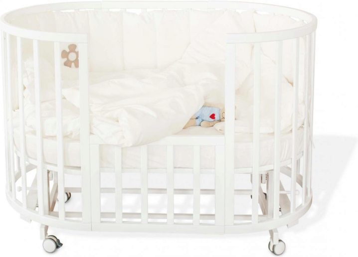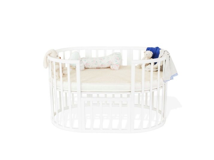 Modern stores provide a wide selection of cots, among which you will definitely find the right one. Recently, beds of not a classical rectangular shape, but oval or round, depending on the size, have become increasingly popular. For the first time, these models of cots appeared in Germany, and from there migrated to the Russian market.With the help of additional inserts, the cradle turns into a full-fledged bed, which is quite convenient for parents, since they will not have to buy several different beds for the child.