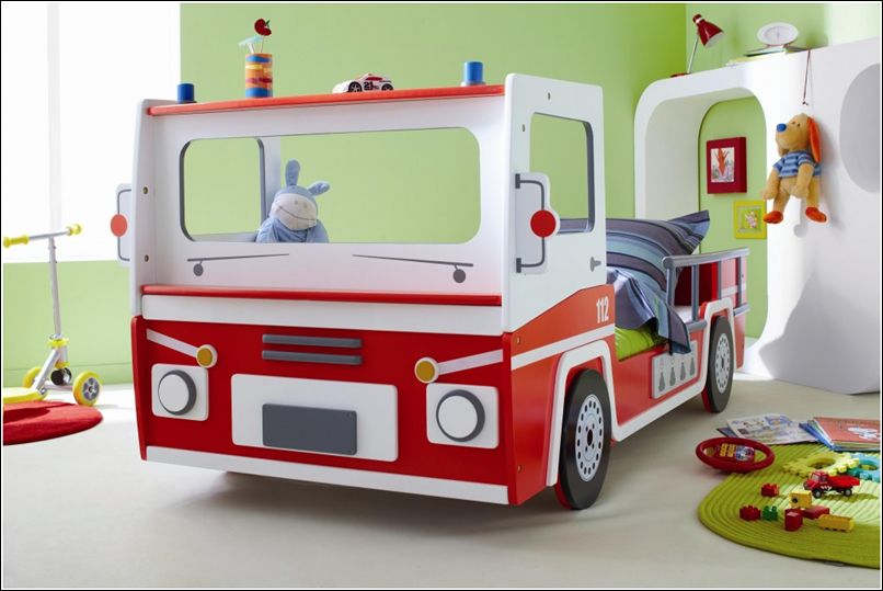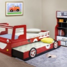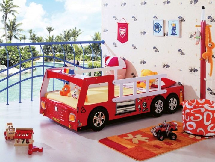 In furniture stores there is a huge selection of beds in the form of machines. It can be a bed in the form of a bus, a fire truck or a race car. The bed can have a lifting mechanism and lighting. It can be equipped with shelves and drawers. In general, there are many options. Consider some of them.