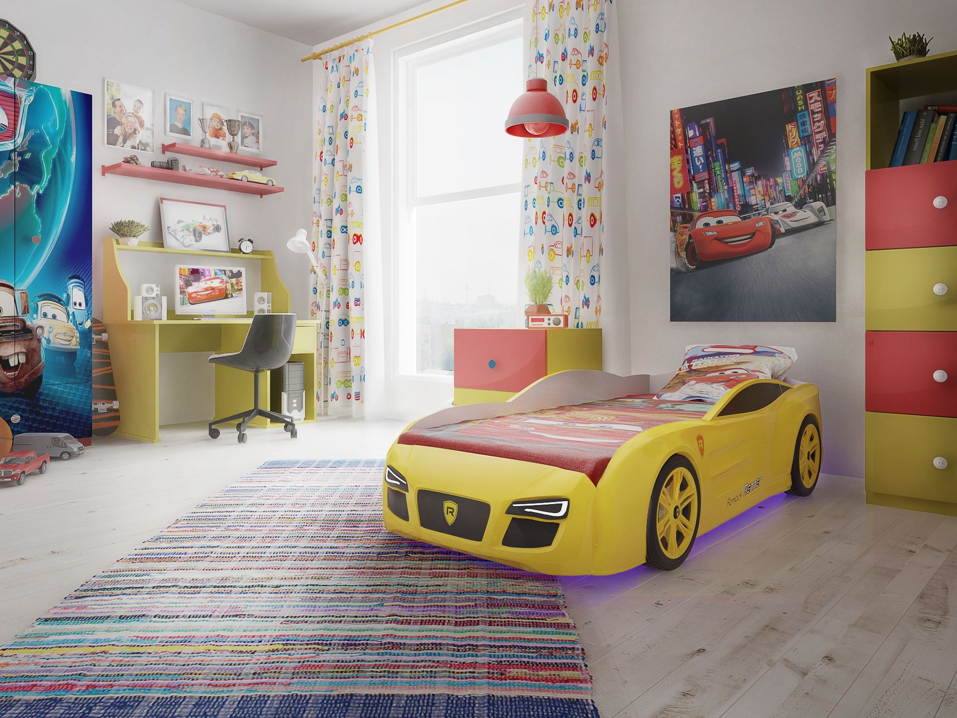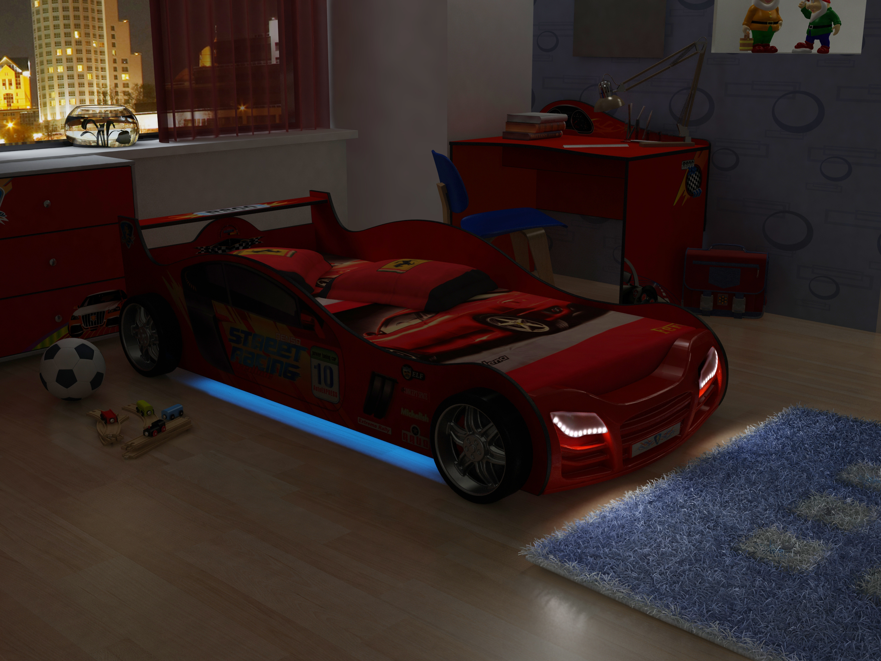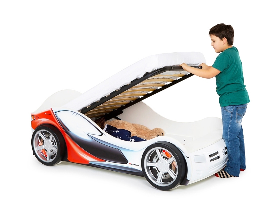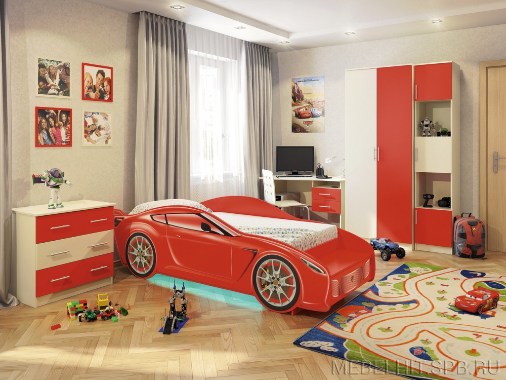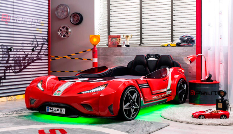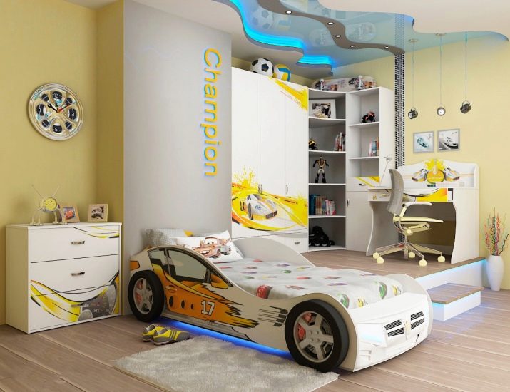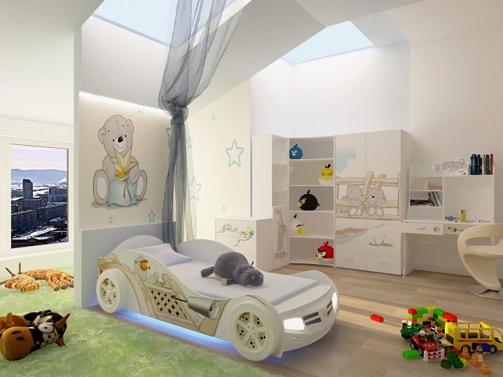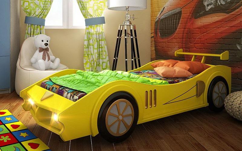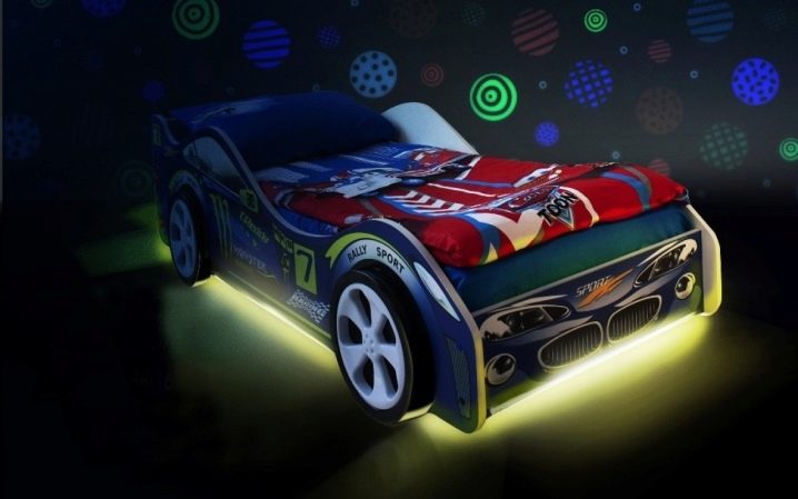 Many manufacturers of cots make beds - cars with an unusual design. Highlighting the bottom of the bed and burning lights - this is what a boy from 3 to 12 years will appreciate.Some children are afraid to sleep in the dark, so the lights can play the role of a night lamp.